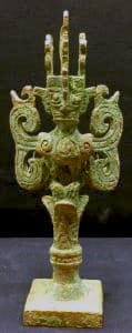 For most of the 20th century the art history of the Shang Dynasty has been taught with bronze vessels excavated in Northeast China. Those objects, although remarkable, include very few images of humans, or human-like figures . Recent excavations at Sanxingdui in Southwest China have revealed the first such figures known to Chinese archaeology. All of them are shamanic figures of one kind or