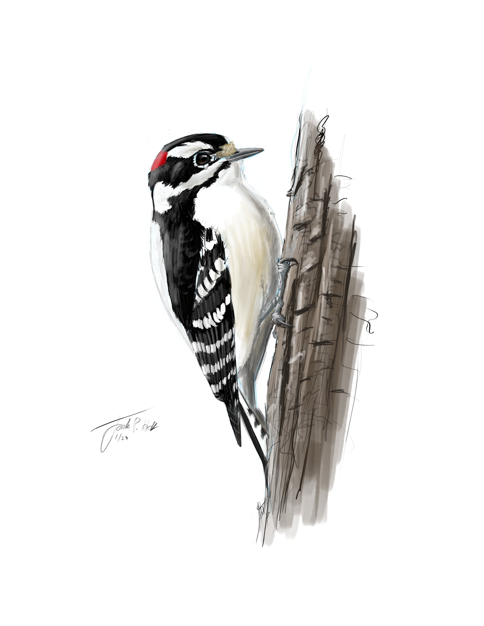 Downy Woodpecker digital painting. Done in Adobe Photoshop.