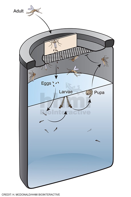 Illustration created for HHMI Biointeractive (www.hhmi.org/biointeractive) educational resources showing an ovitrap, a device that can be used to monitor mosquito populations.