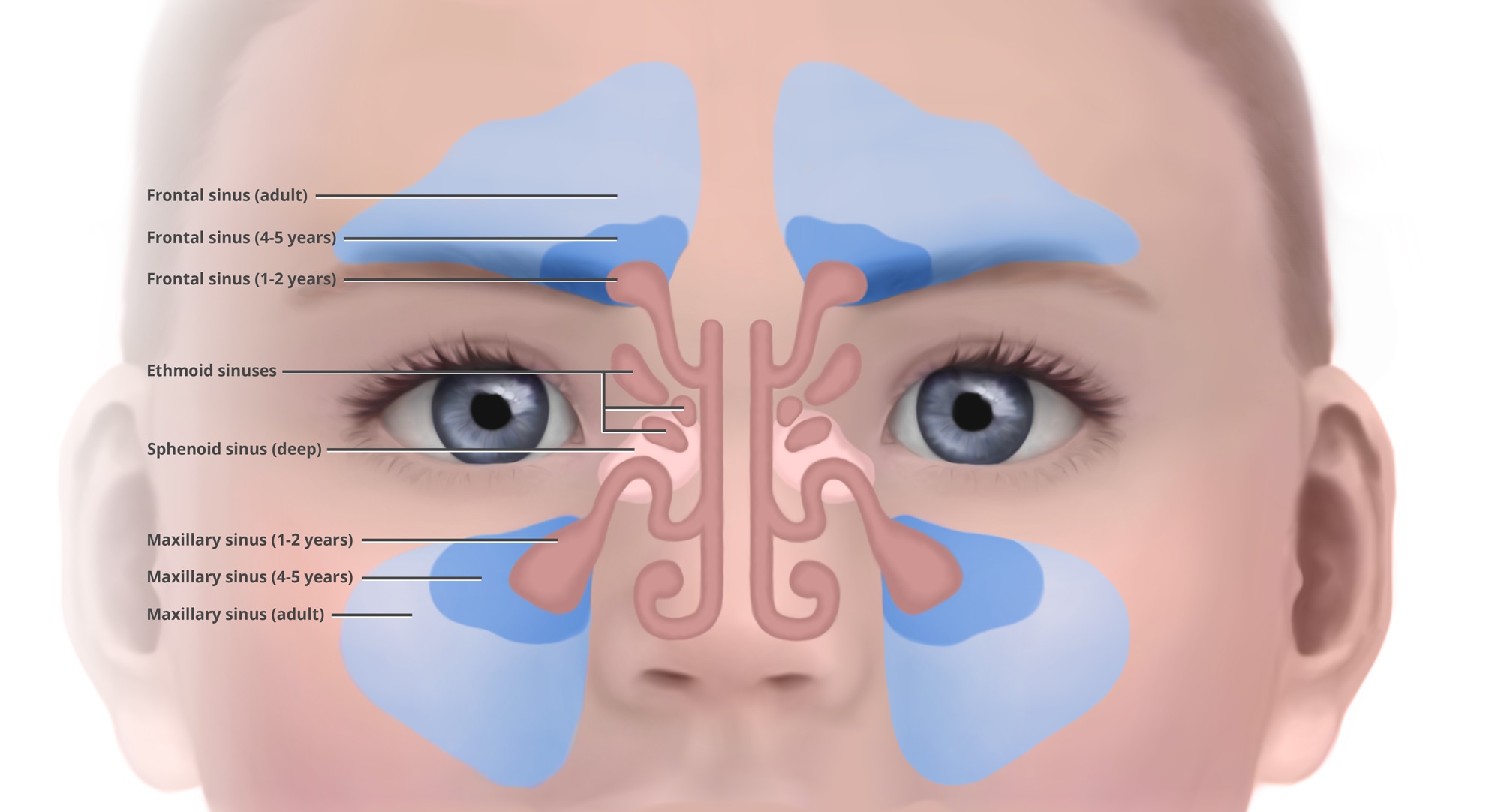 A digital painting created to show the change in sinus anatomy with age, for a course teaching new parents about pediatric health and common childhood illnesses.