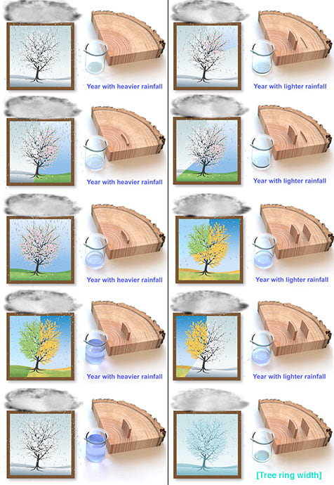 Still from animation showing tree ring growth in years from the USGS podcast "Microfossils Reveal the Climatic History of the Gulf of Mexico" (no longer available online). Podcast production team included Ann Tihansky, Matthew Cimitile, and Betsy Boynton.