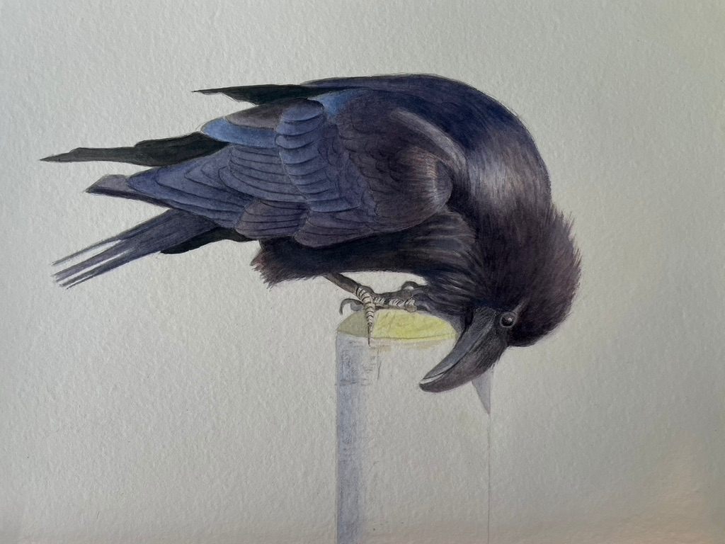 "Bill-Feaking" is a falconry term describing the act of a bird's wiping its bill on a branch or hard object in attempts to clean it. Raptors and Corvids often "feak" their bills to maintain and fine-tune their condition. Since beaks are comprised of keratin, they are constantly growing and need to be shaped to adapt to their specific food source. Birds can also display bill-feaking when they are annoyed or their activities are disrupted and they become nervous or agitated.