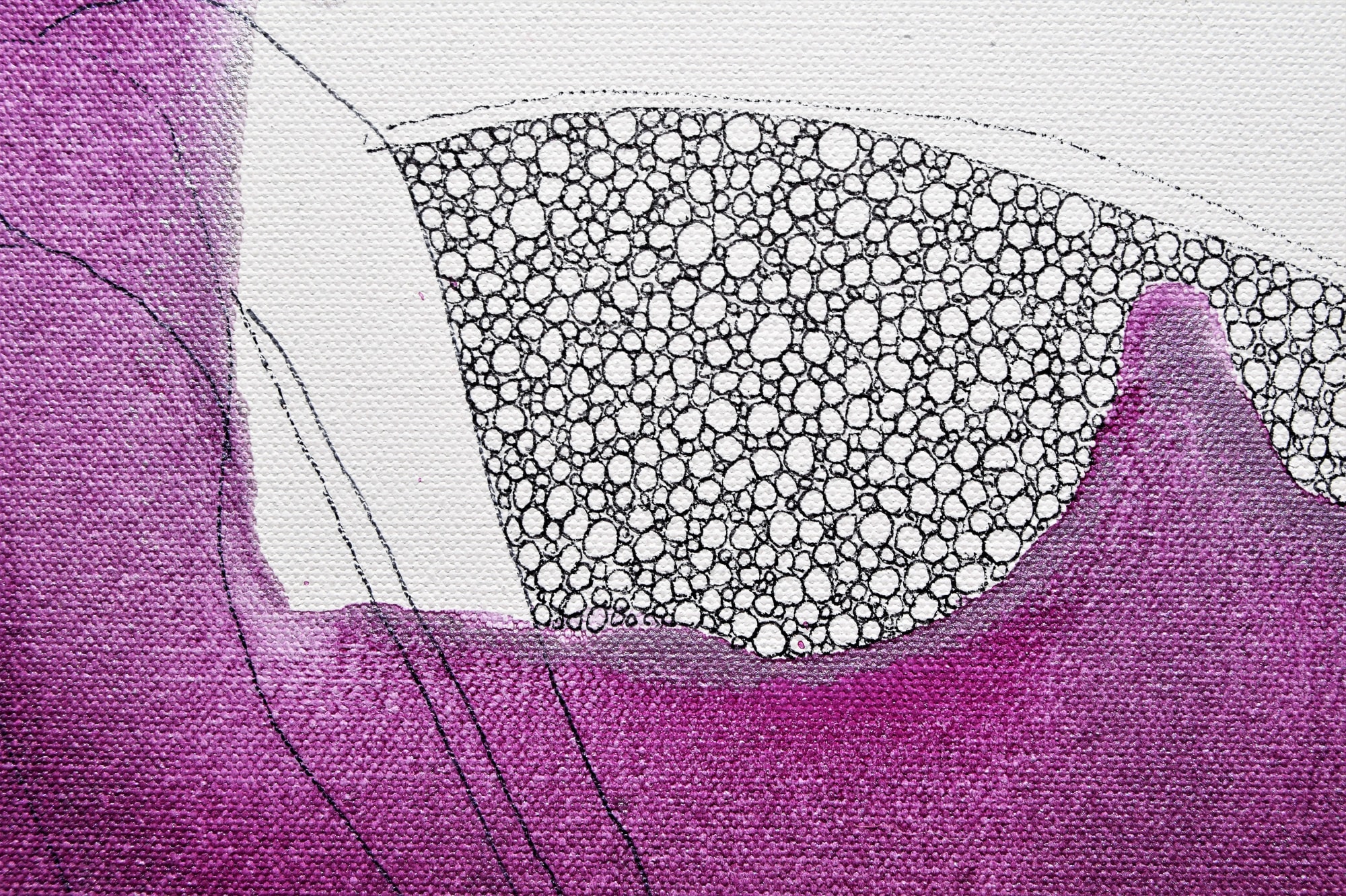 With wildflower in one hand and pen in the other, a delicate drawing commands the canvas. Blossom inspired color comes next. The hand returns to resolve the painting.
