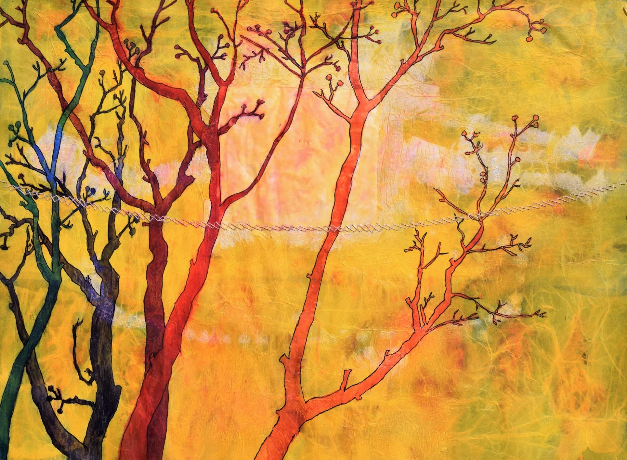 The sewing in the painting hearkens back to the days when women were limited in their access to fine art materials. Rather than giving up they chose to work with what was available and often that was a needle and thread. Stitching is incorporated in other paintings, but this was the first time I included sewing in a painting.