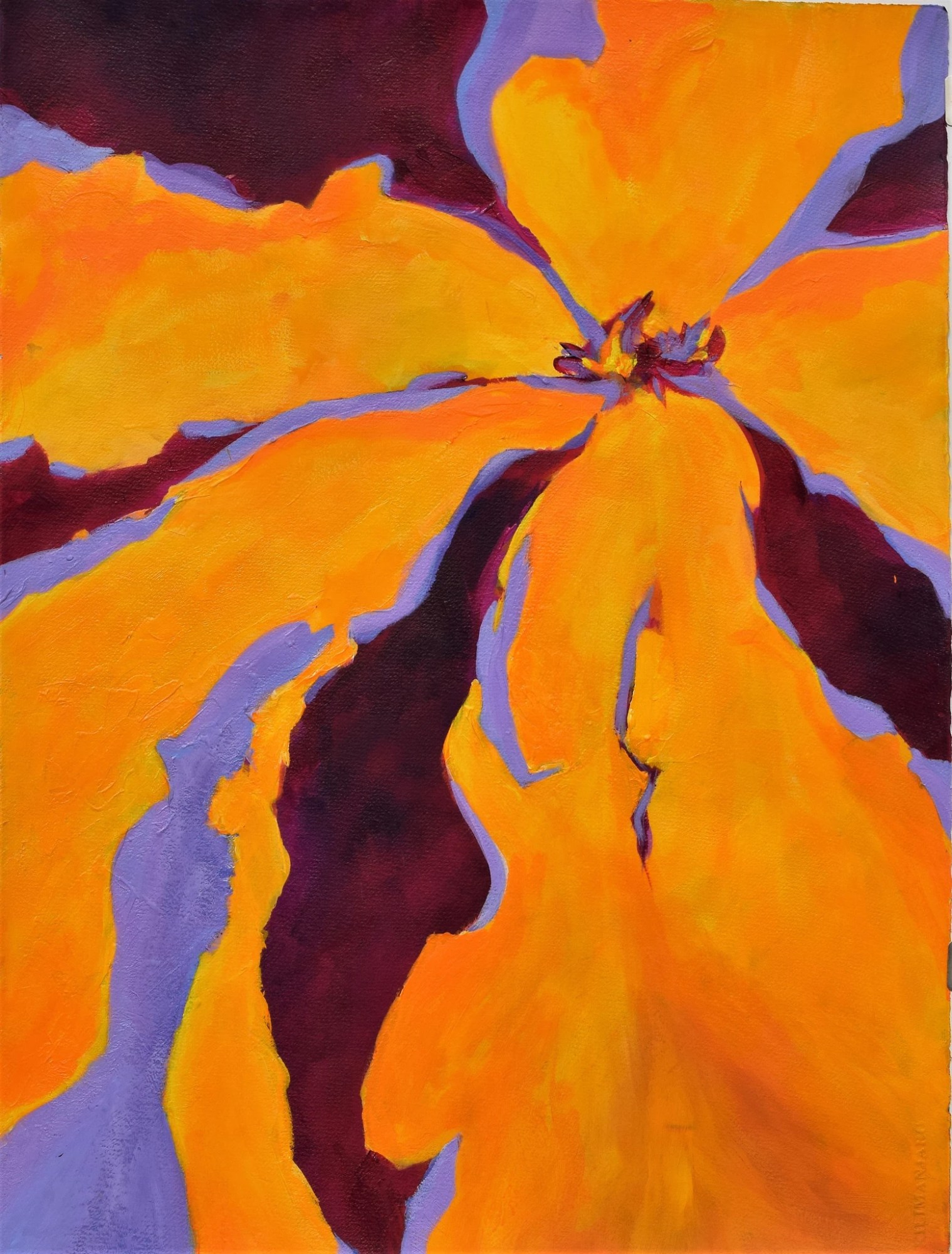 This is a painting of joy and journey. The flower is a flower but it is also a representation of the trail. The valleys and the hills, the wide and the narrow. The twisting and the straight. All leading to a place of peace and hope.