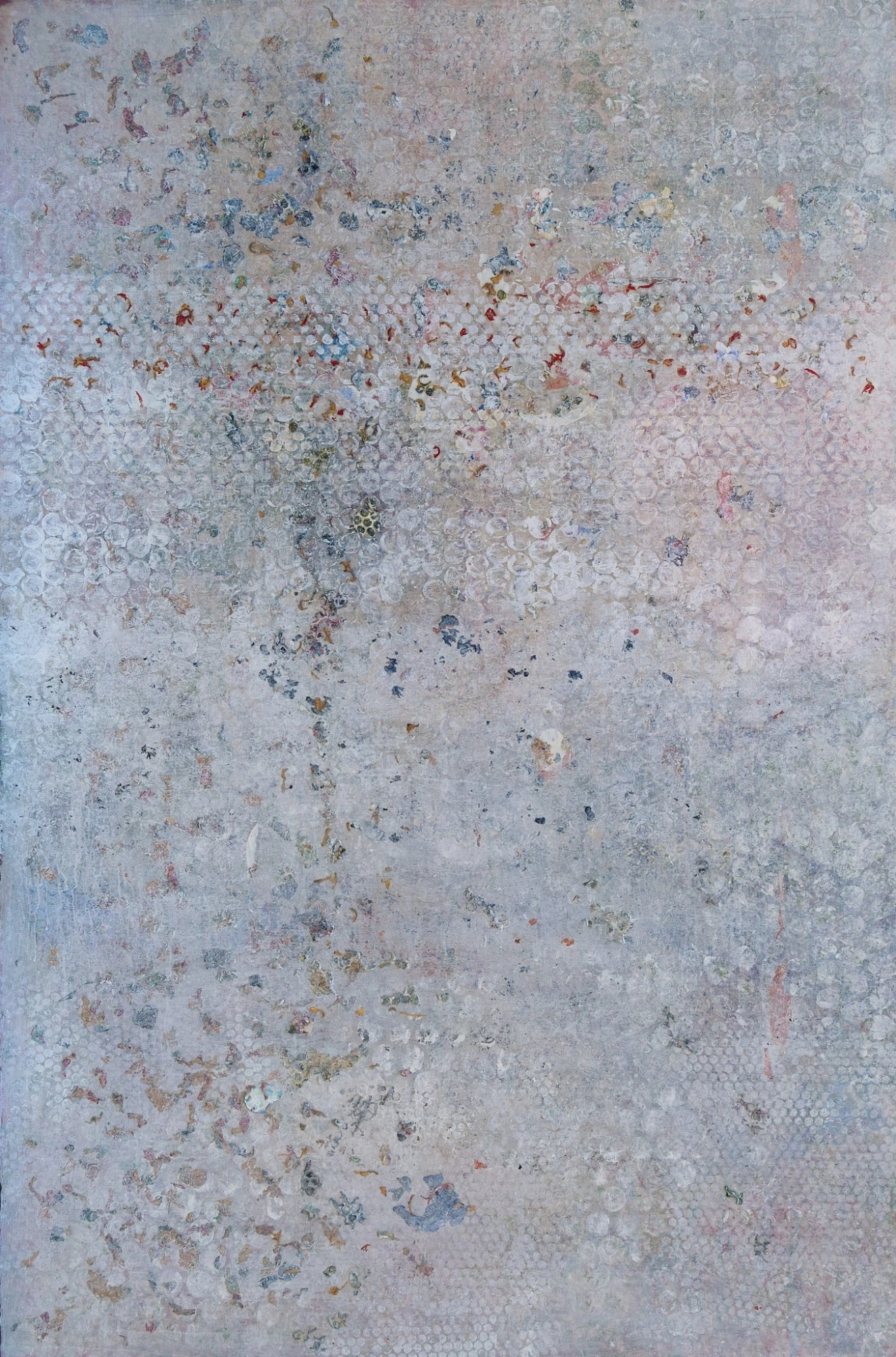 The colors shift ever so subtly from warm to cool. The texture and size graduates from top to bottom. The depth in this painting is almost magical. This painting, like a thick layer of ice over a frozen pond, you can never be certain if you are seeing the surface or seeing inside.