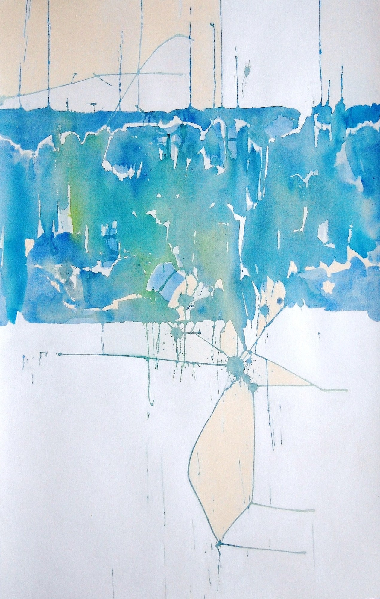 I love this painting. It was painted at a time when barriers beyond my control were all I could see. I was searching for a way through, but there was a cost. I had to risk leaving the dry river bank and jumping into the cold water that was way over my head. I had to swim. A good thing about swimming.You have to leave your baggage behind.