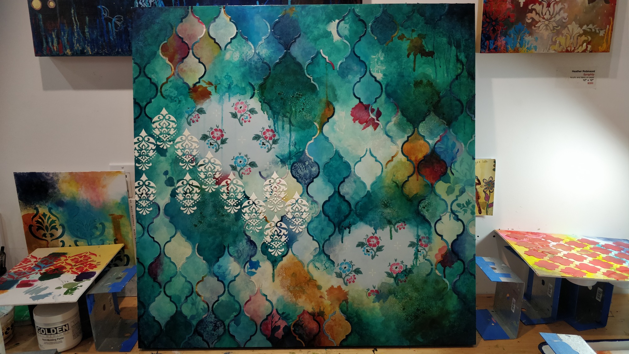 acrylic and fabric on panel