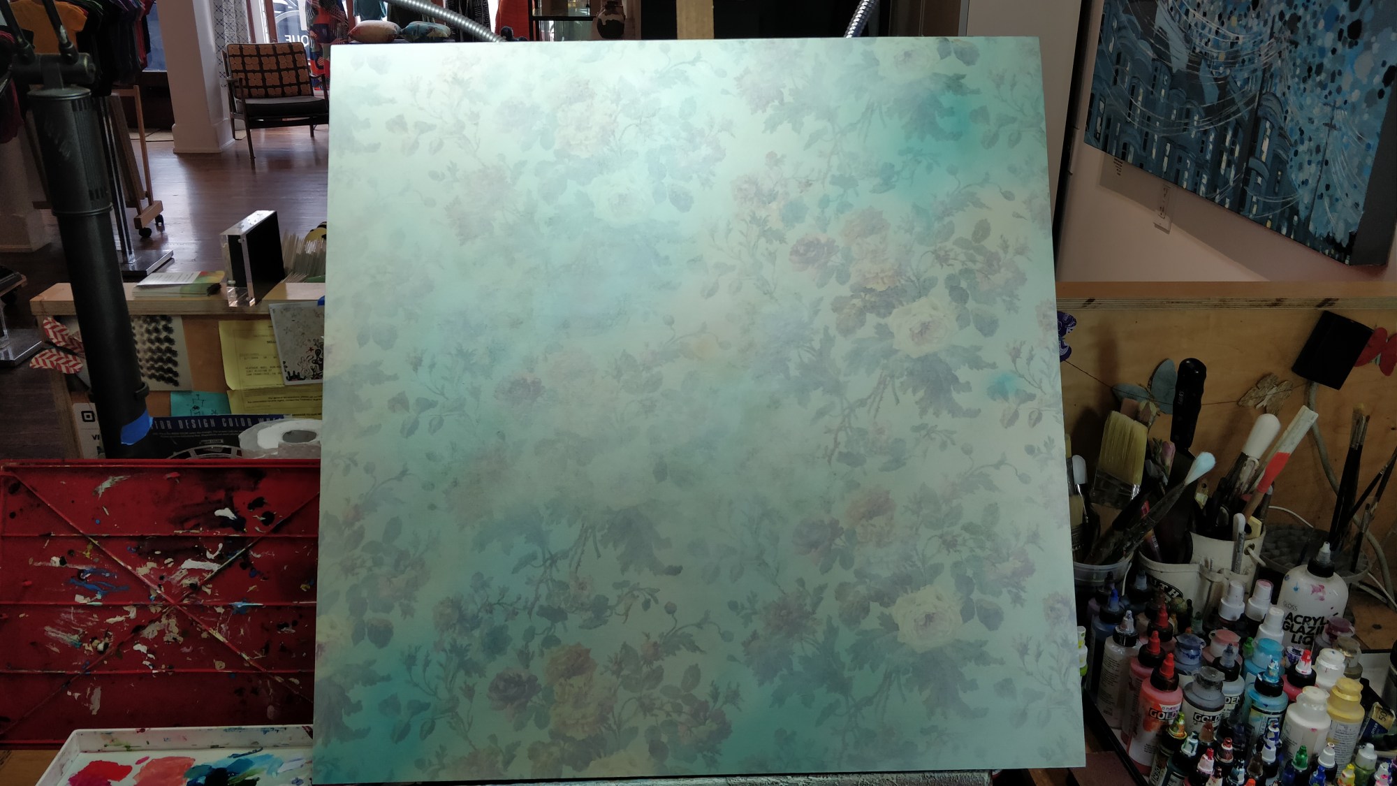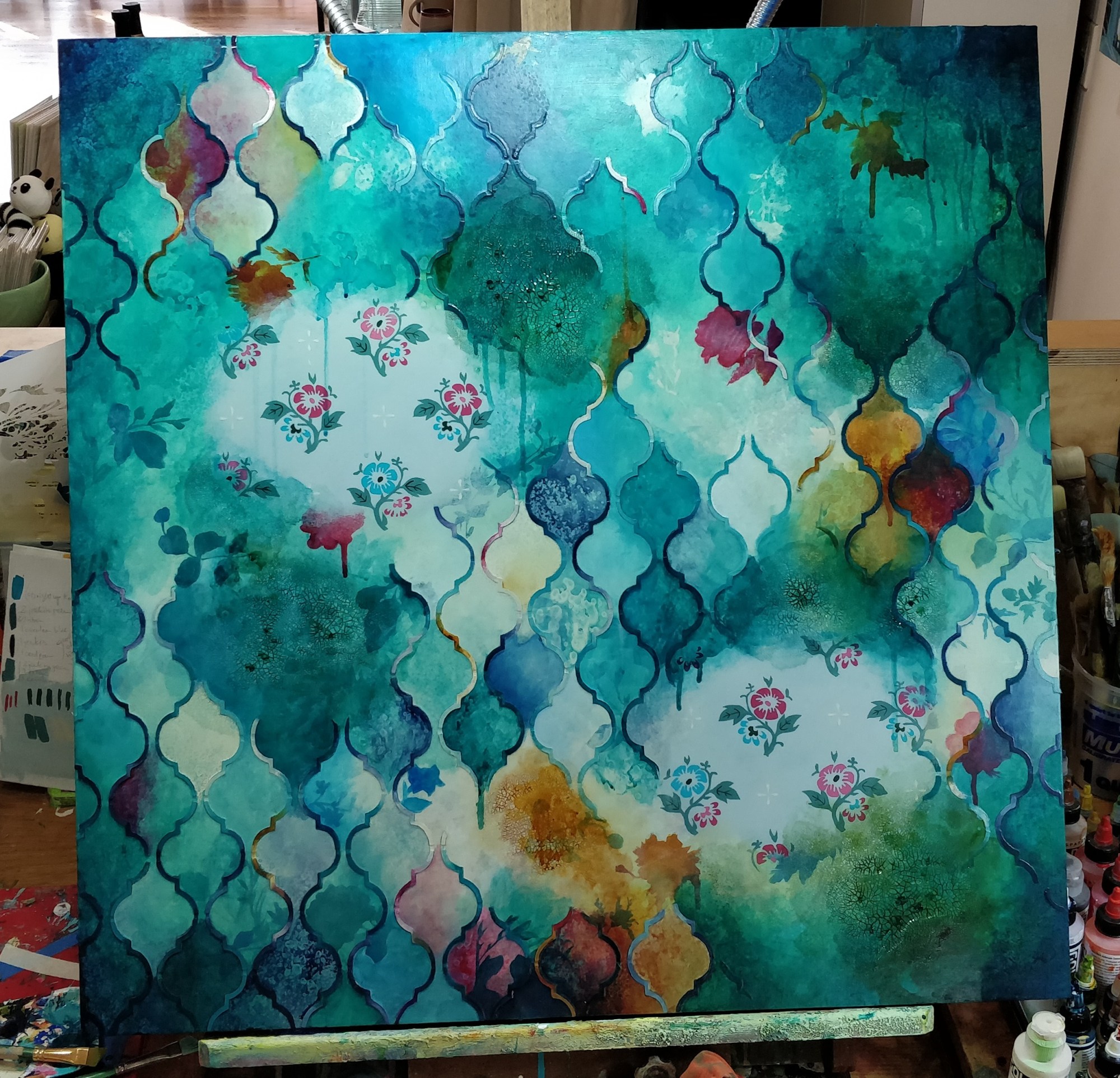 acrylic and fabric on panel