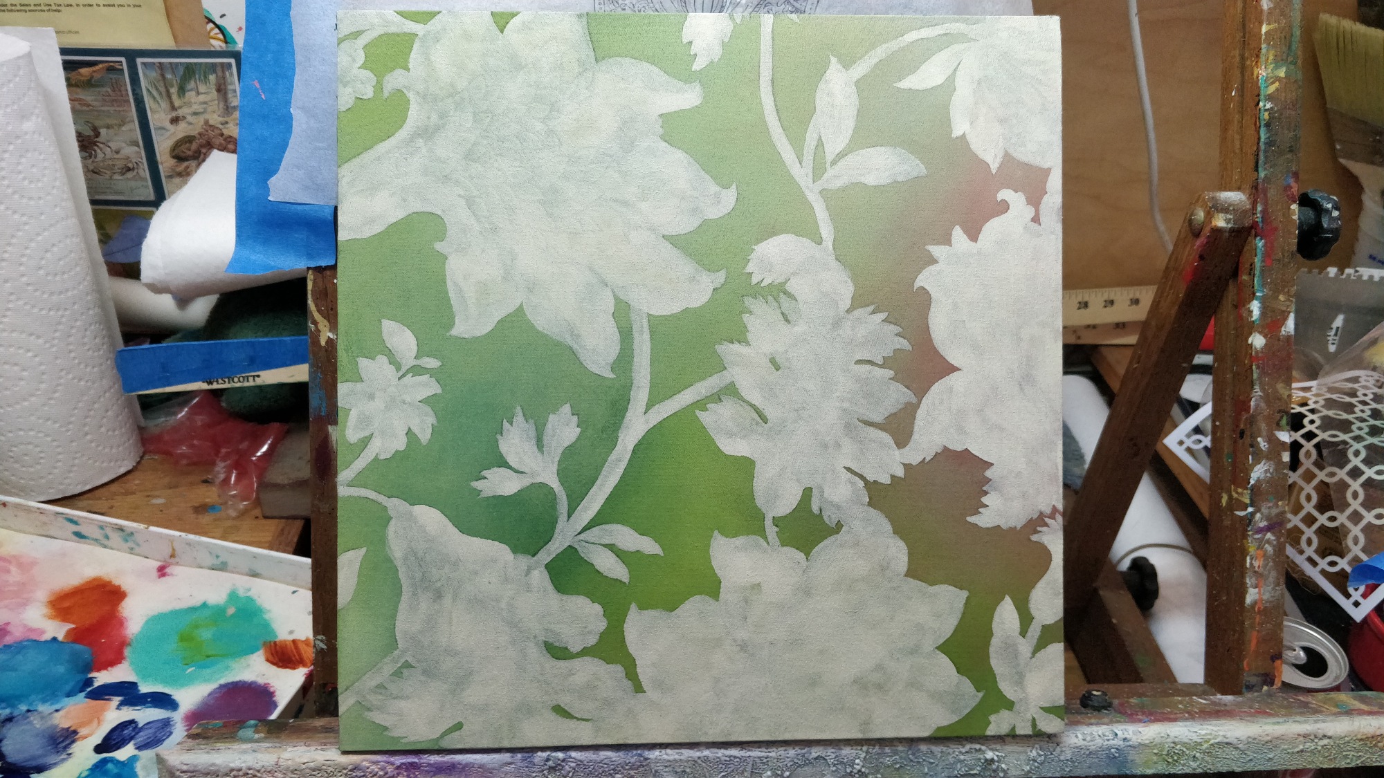 Acrylic and fabric on panel