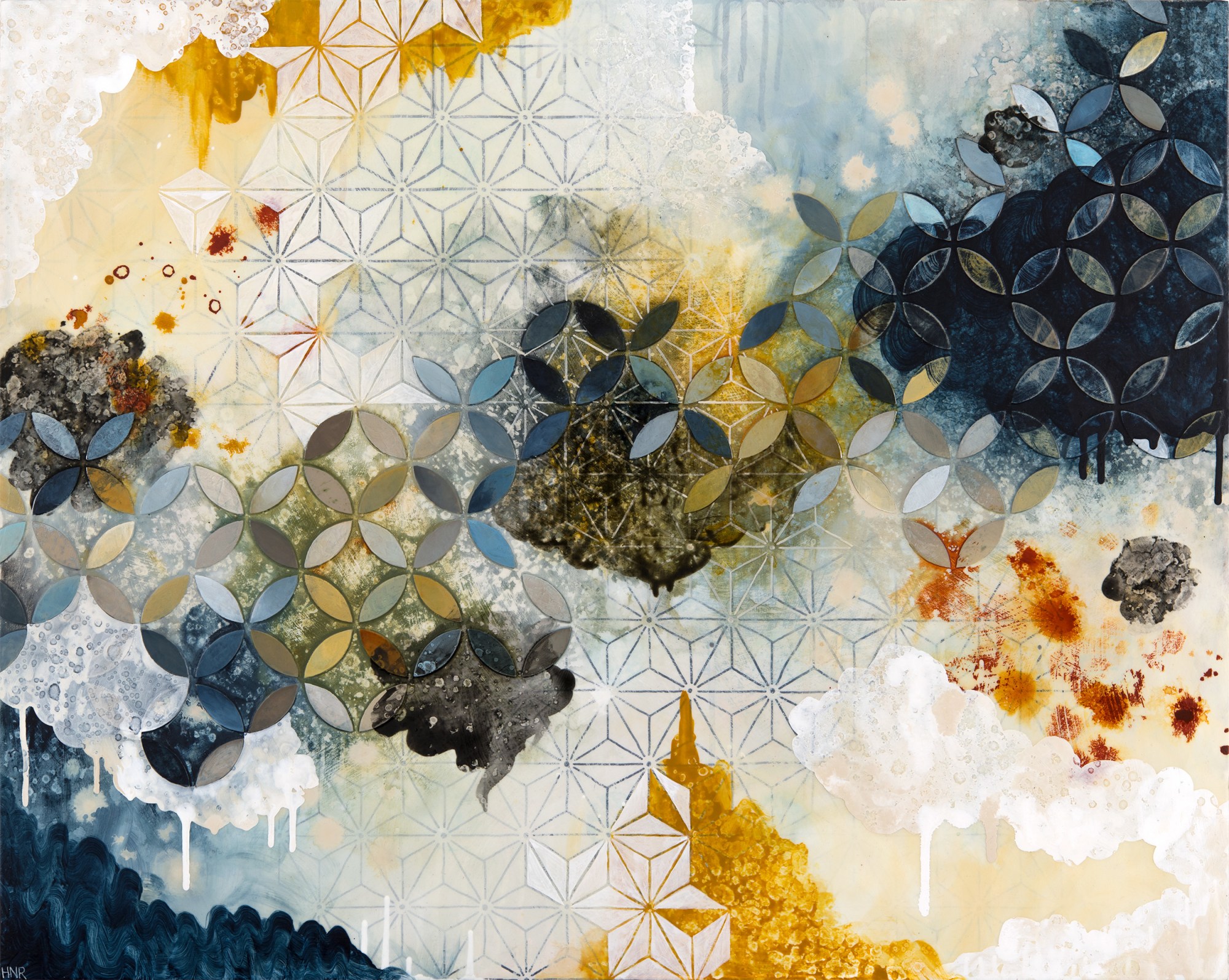 acrylic and fabric on panel