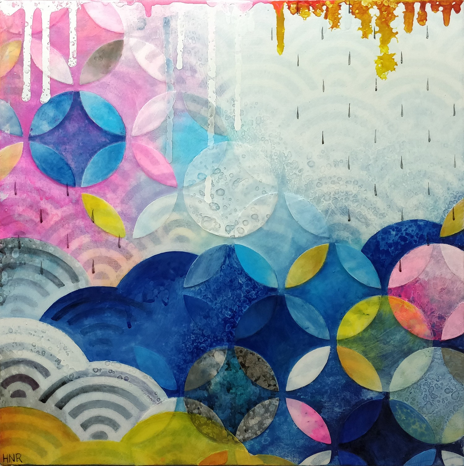 acrylic and fabric on panel