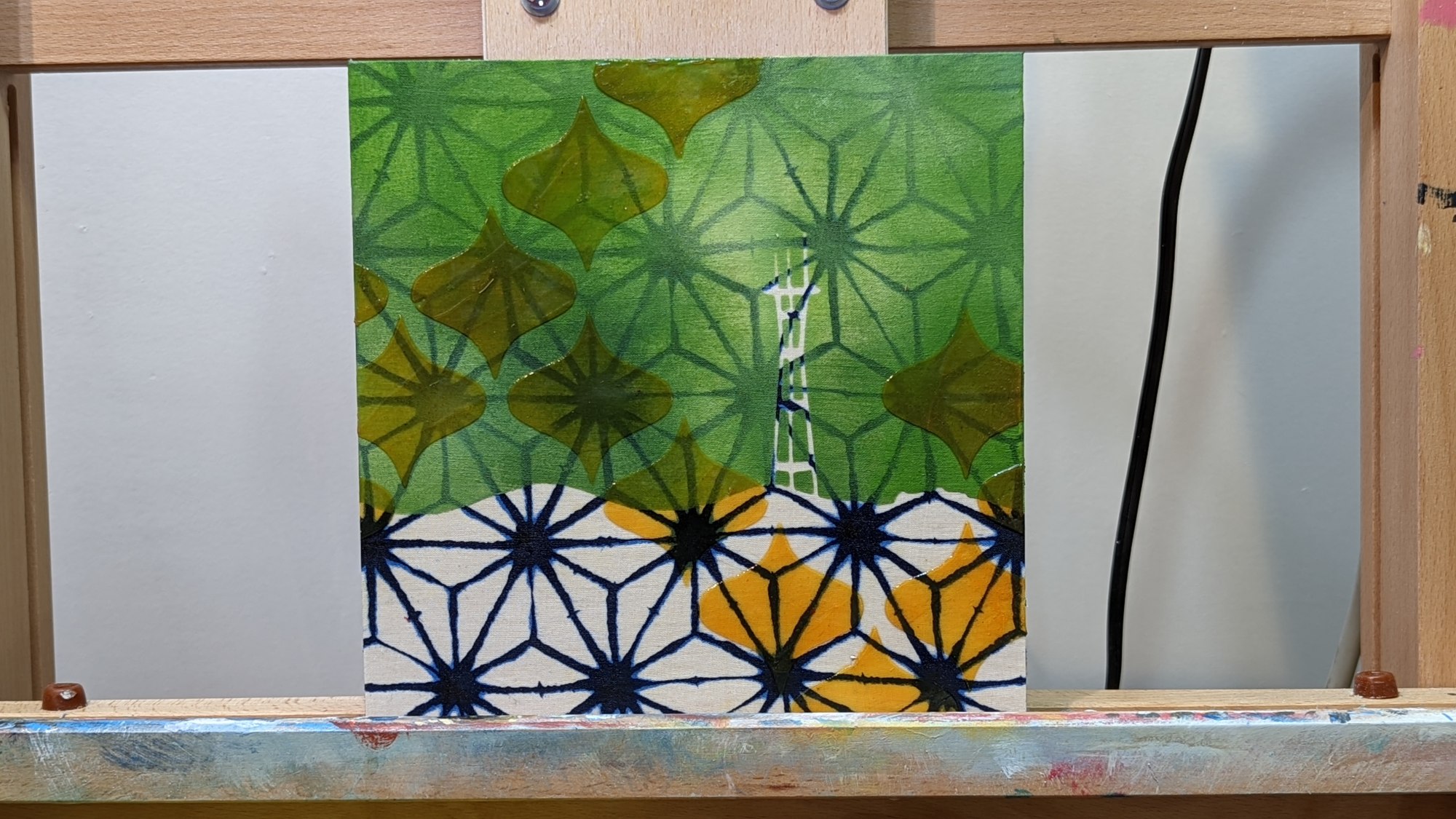 acrylic and fabric on panel