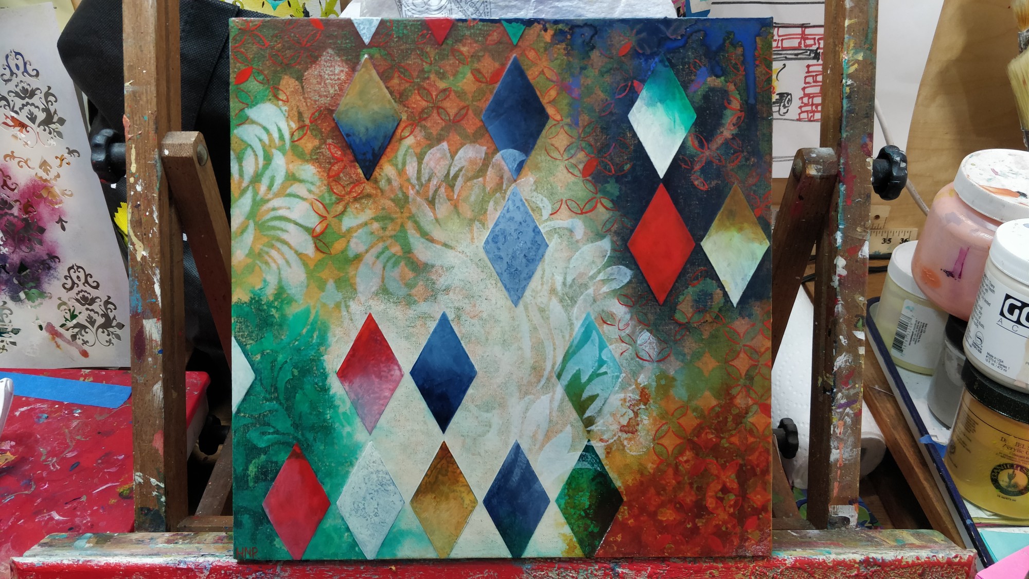 acrylic on fabric-covered panel
