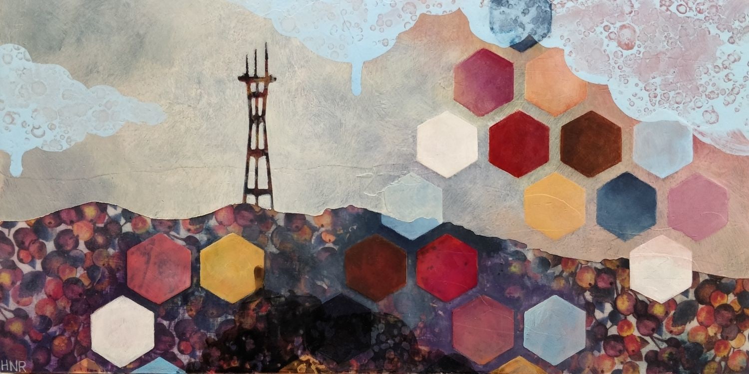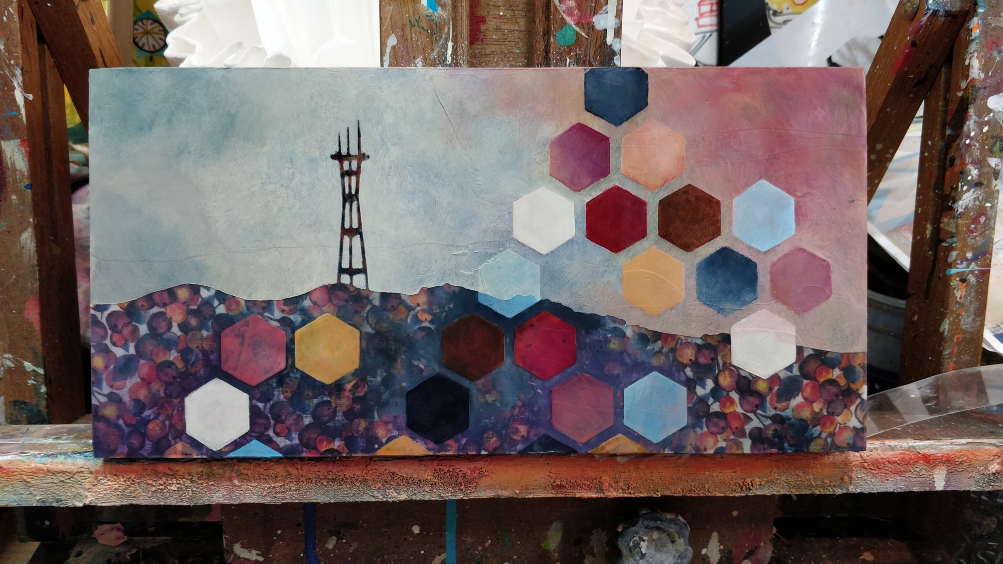 acrylic and fabric on panel