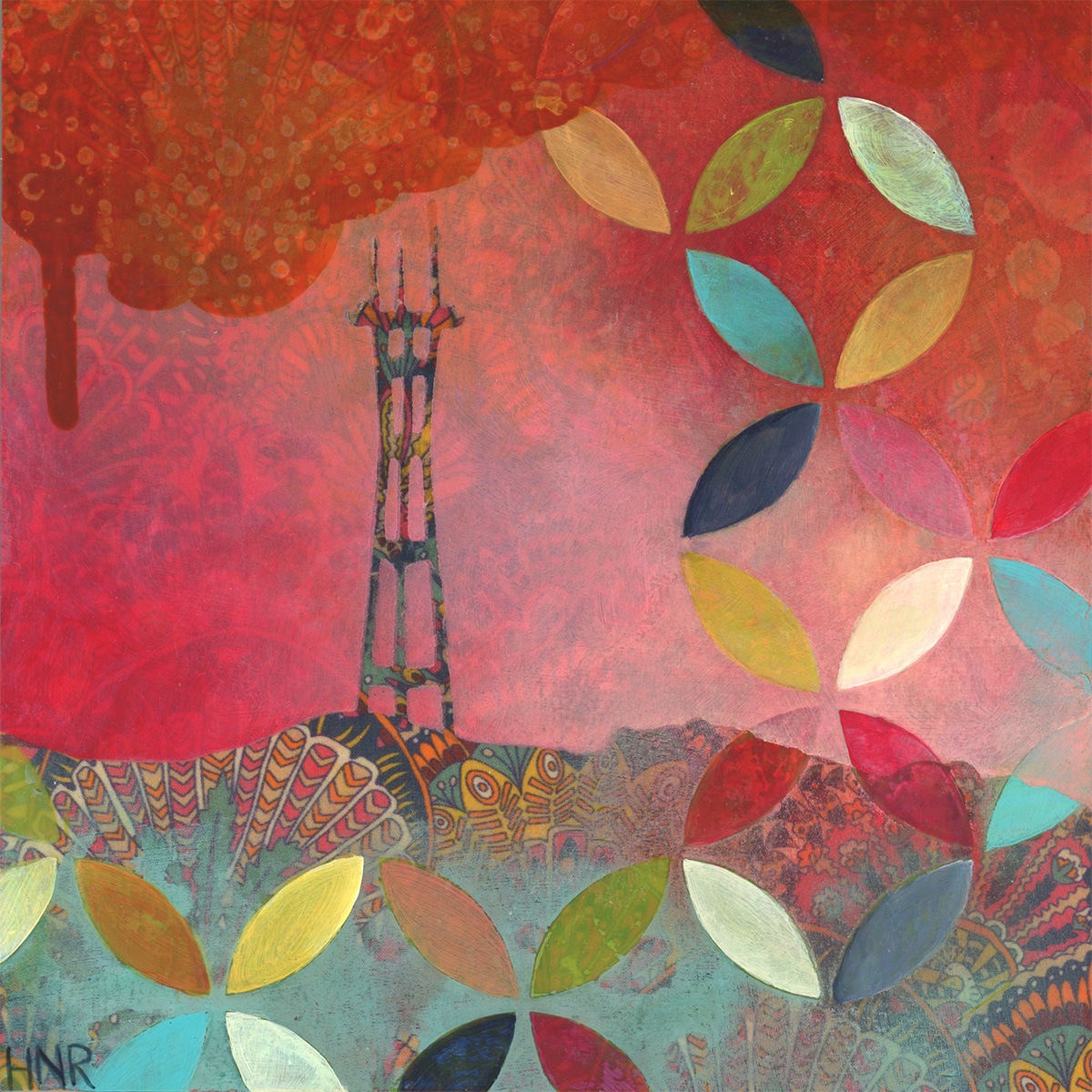 acrylic and fabric on panel
