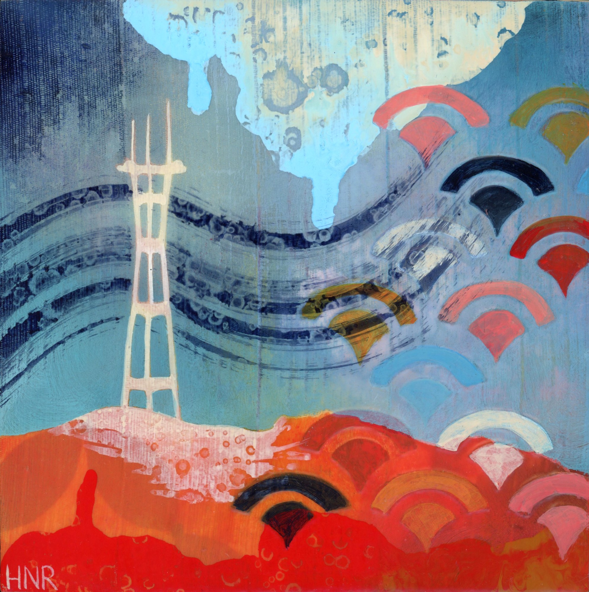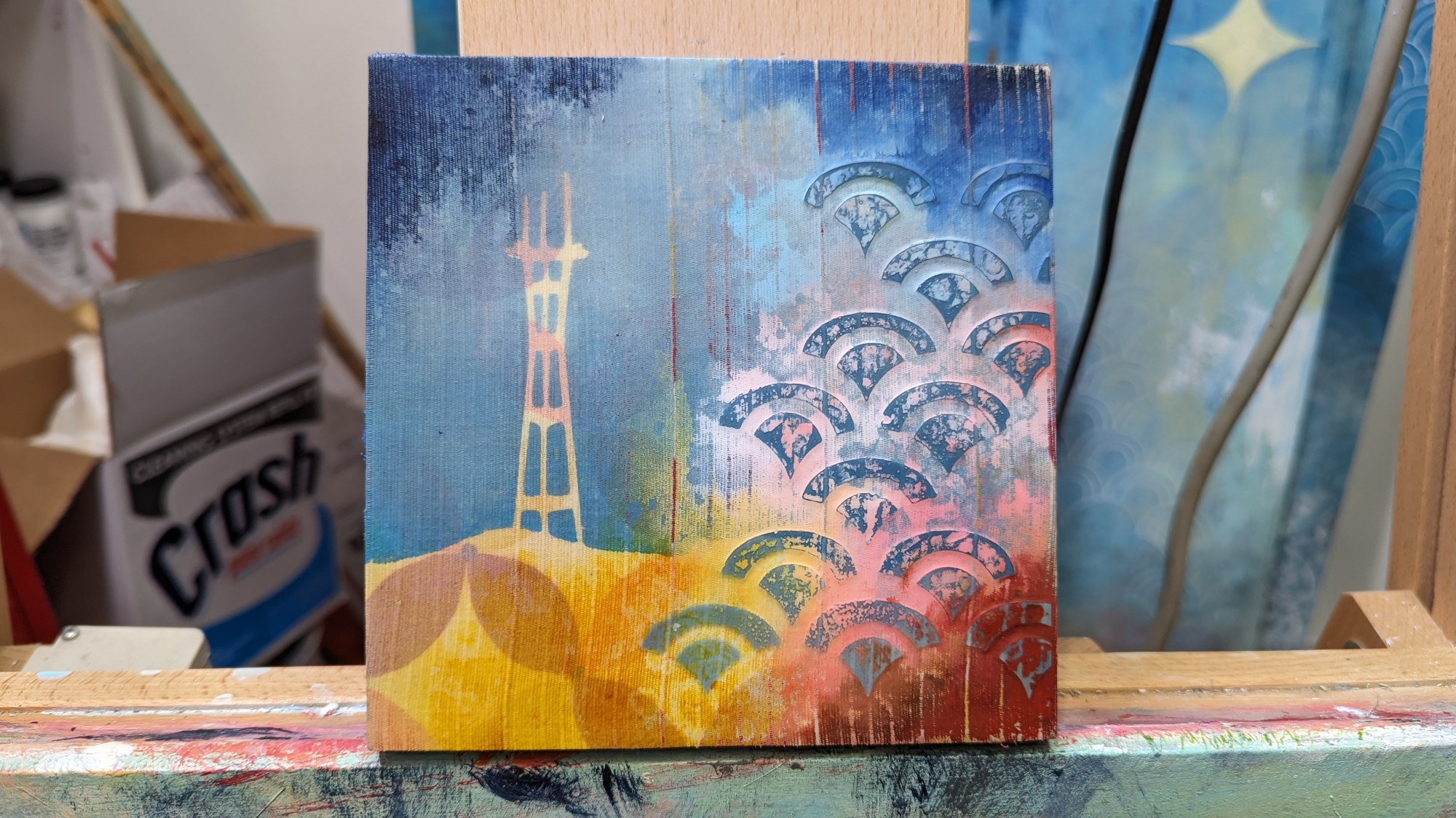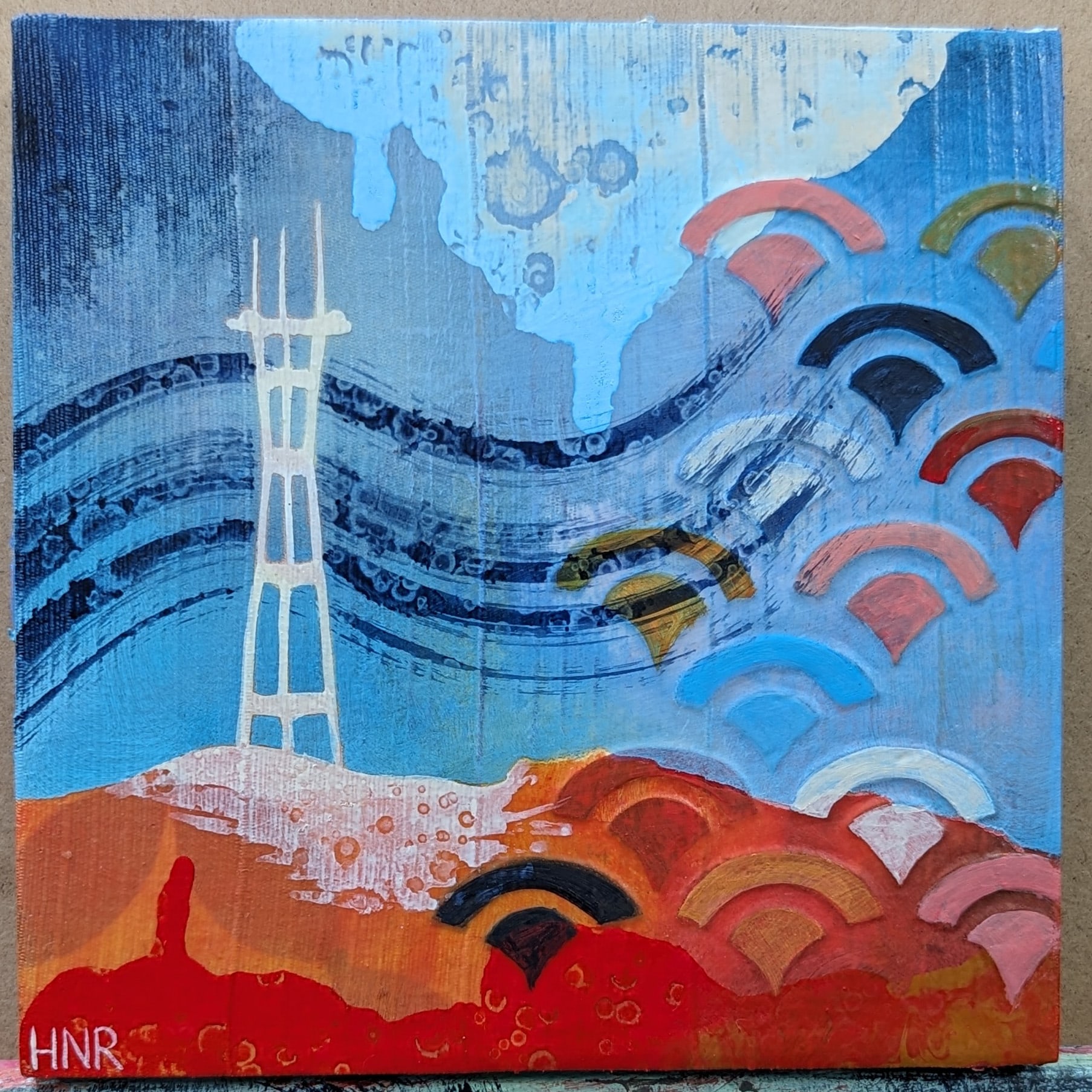 acrylic on fabric-covered panel