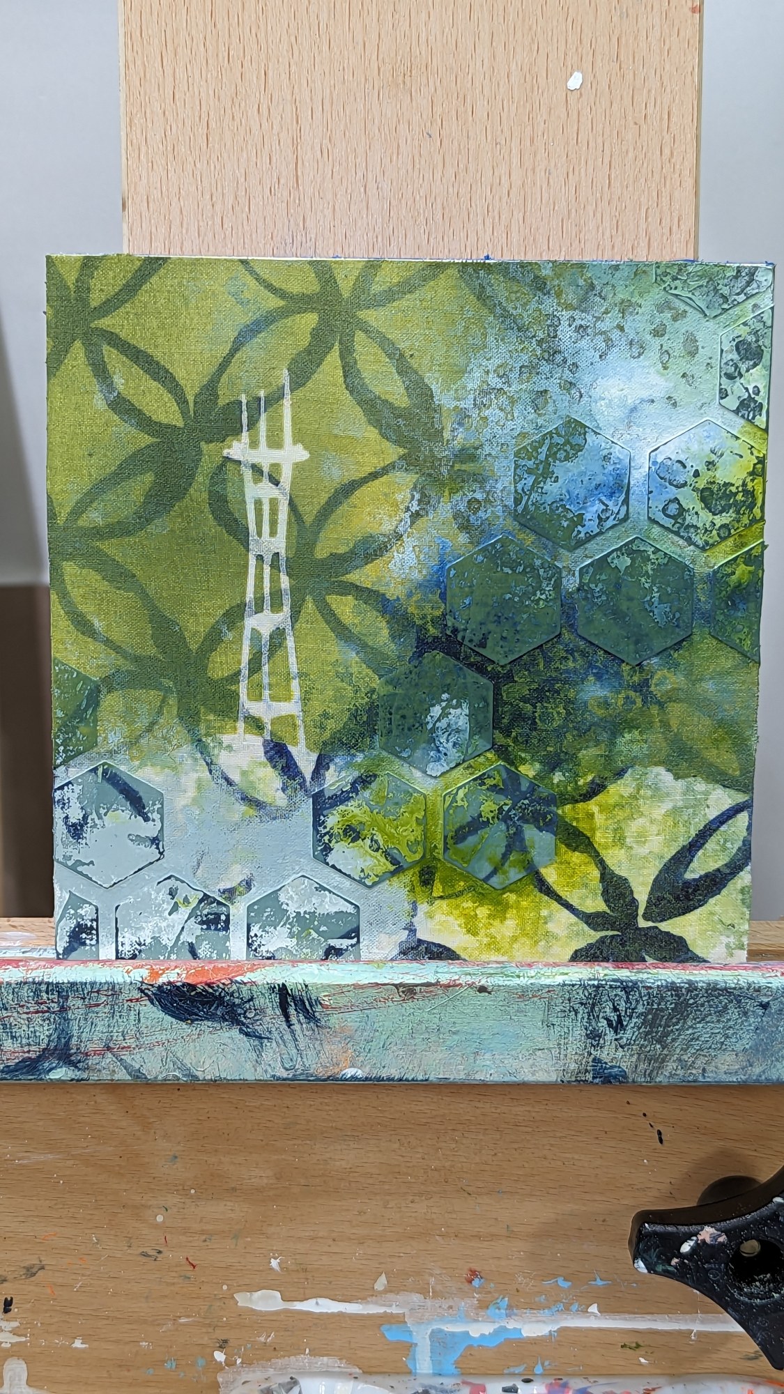 acrylic on fabric-covered panel