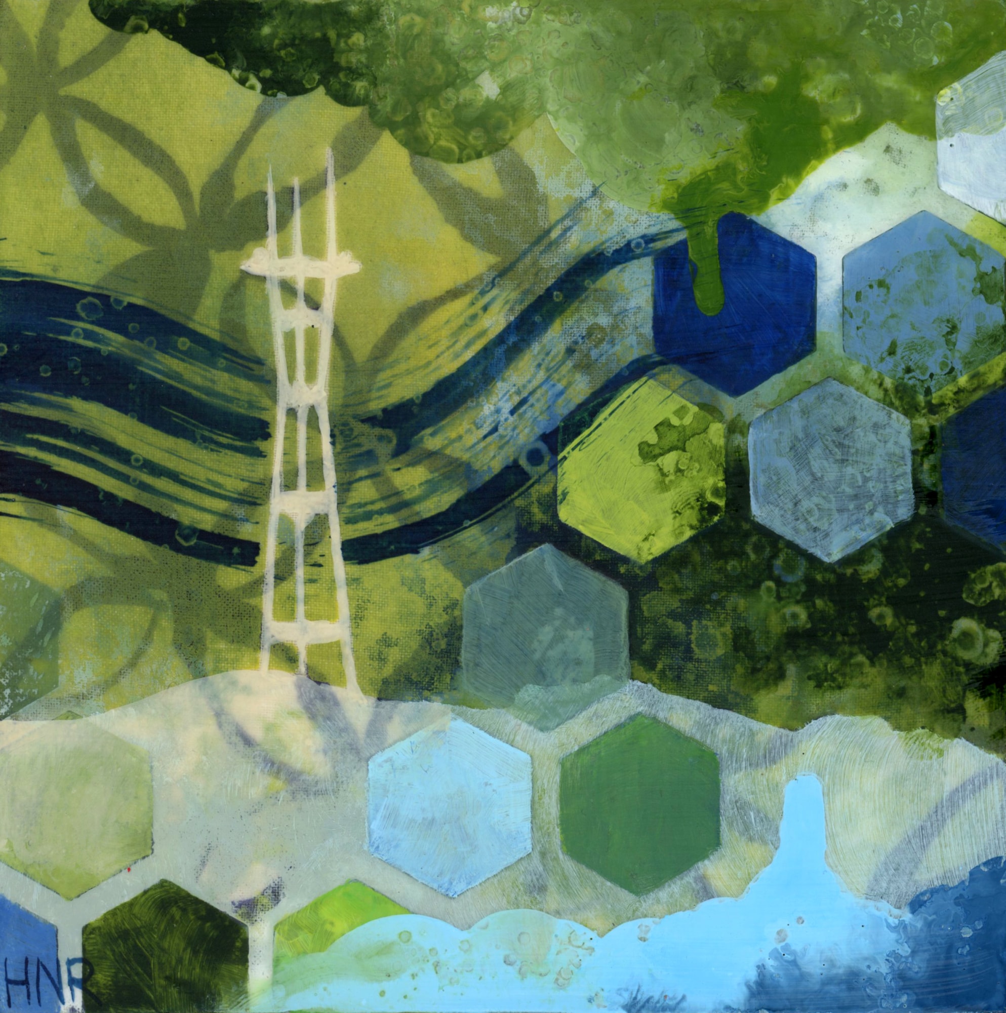 acrylic on fabric-covered panel
