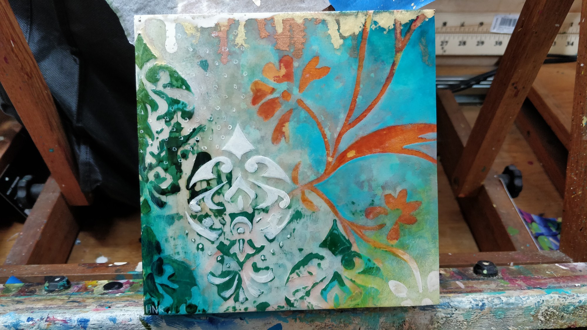 acrylic and fabric on panel