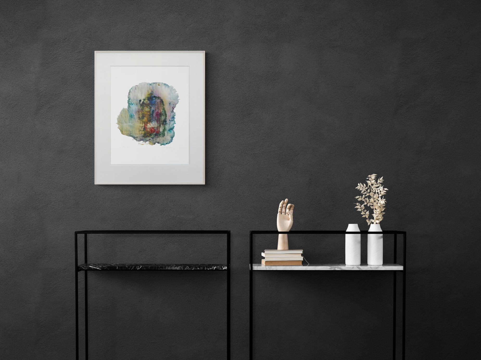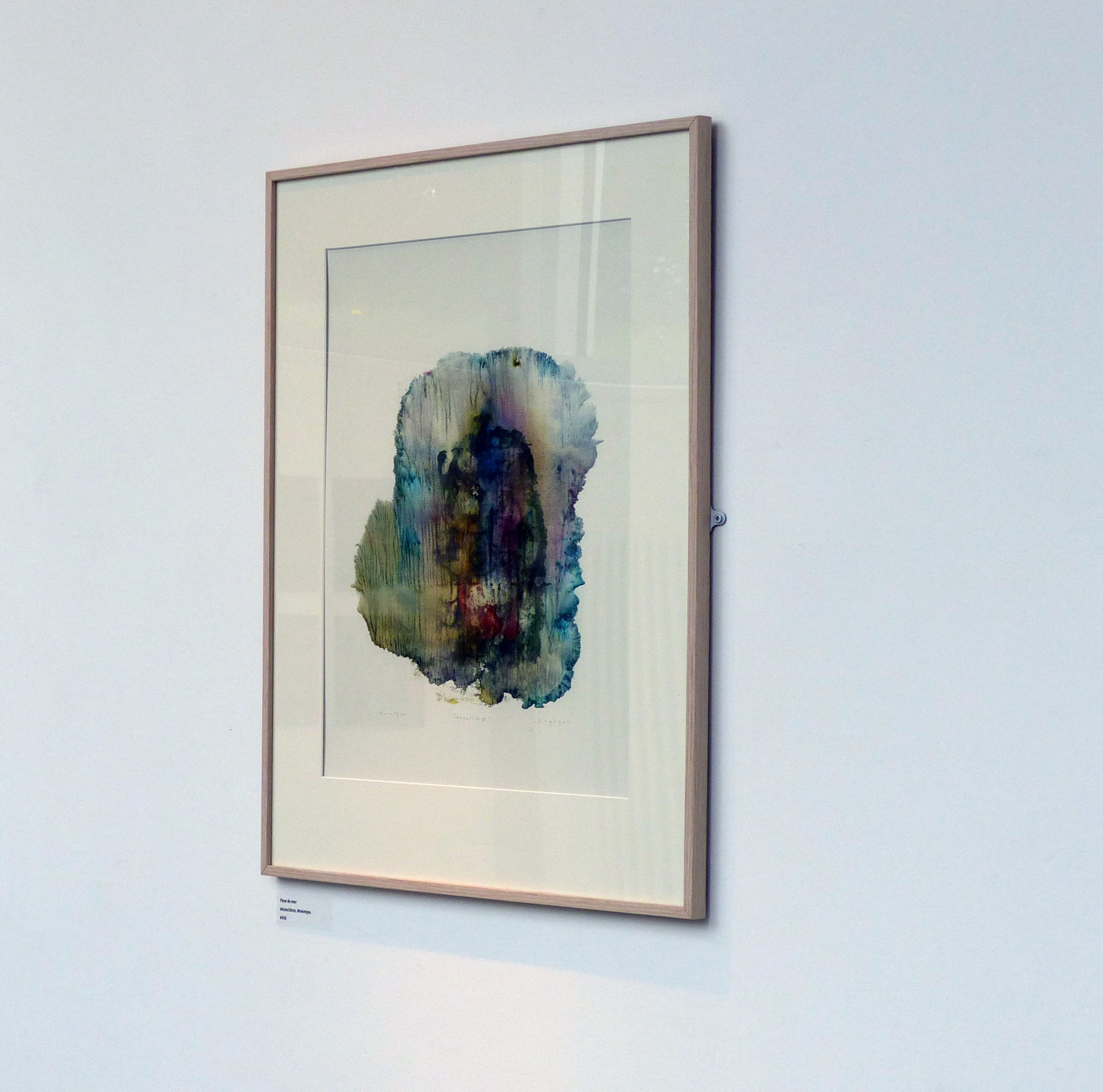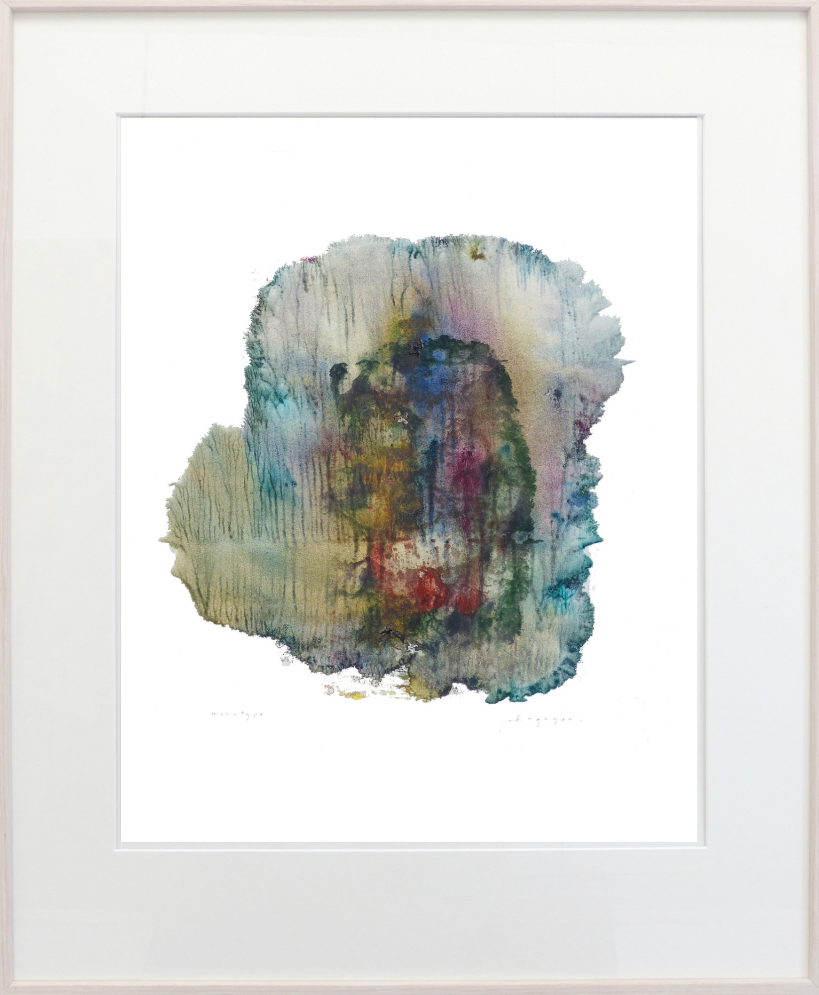 Monotype printed on 165gm Cream Laid rag paper. Mounted on board. Original, signed and framed with a thin hardwood white lime molding and glass.