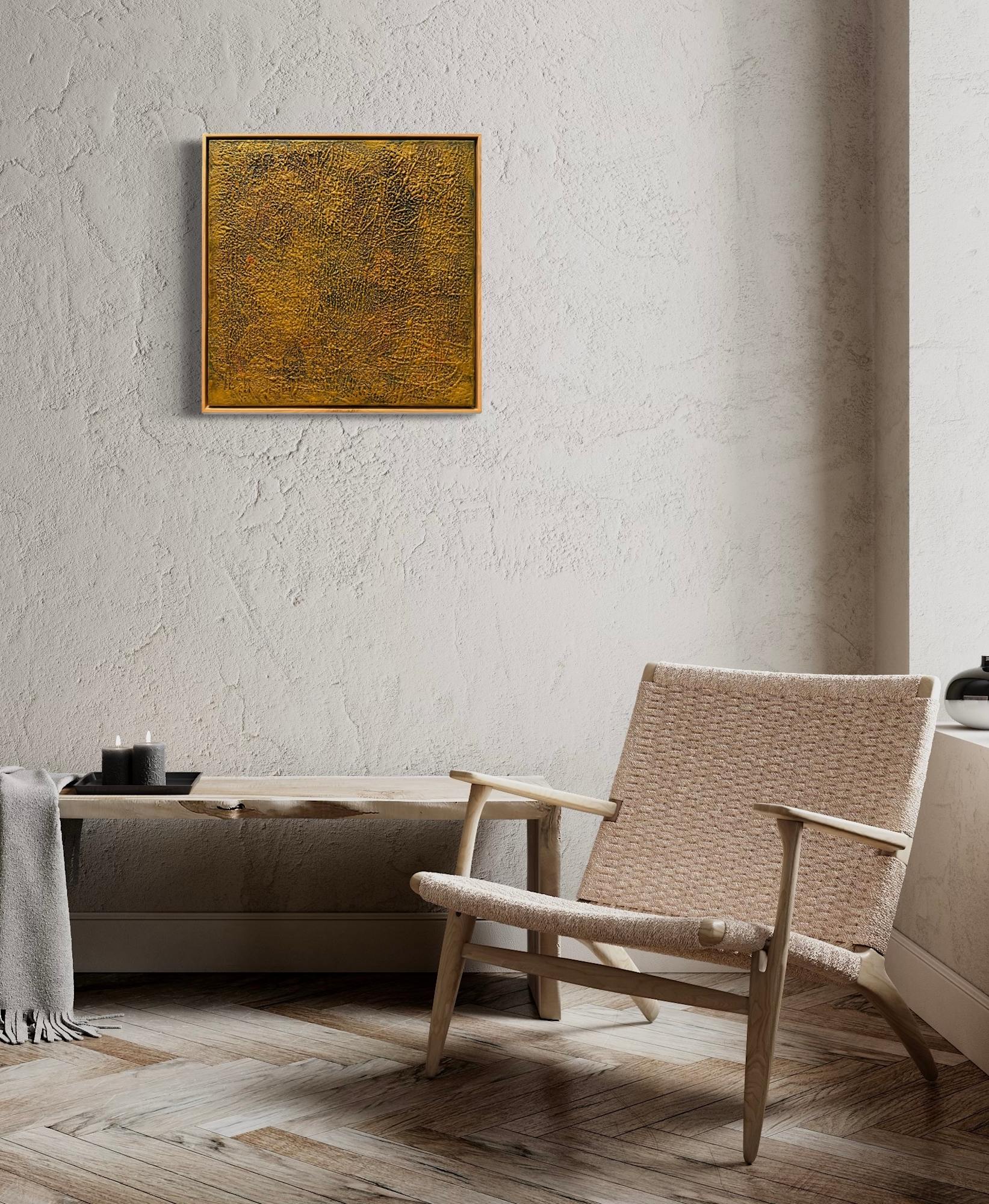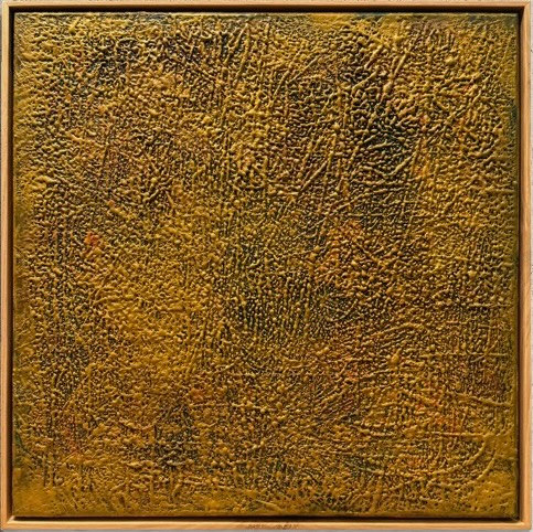 Mixed Media : Solid Encaustic Wax, 24k Gold on Wood, Solid Oak Frame