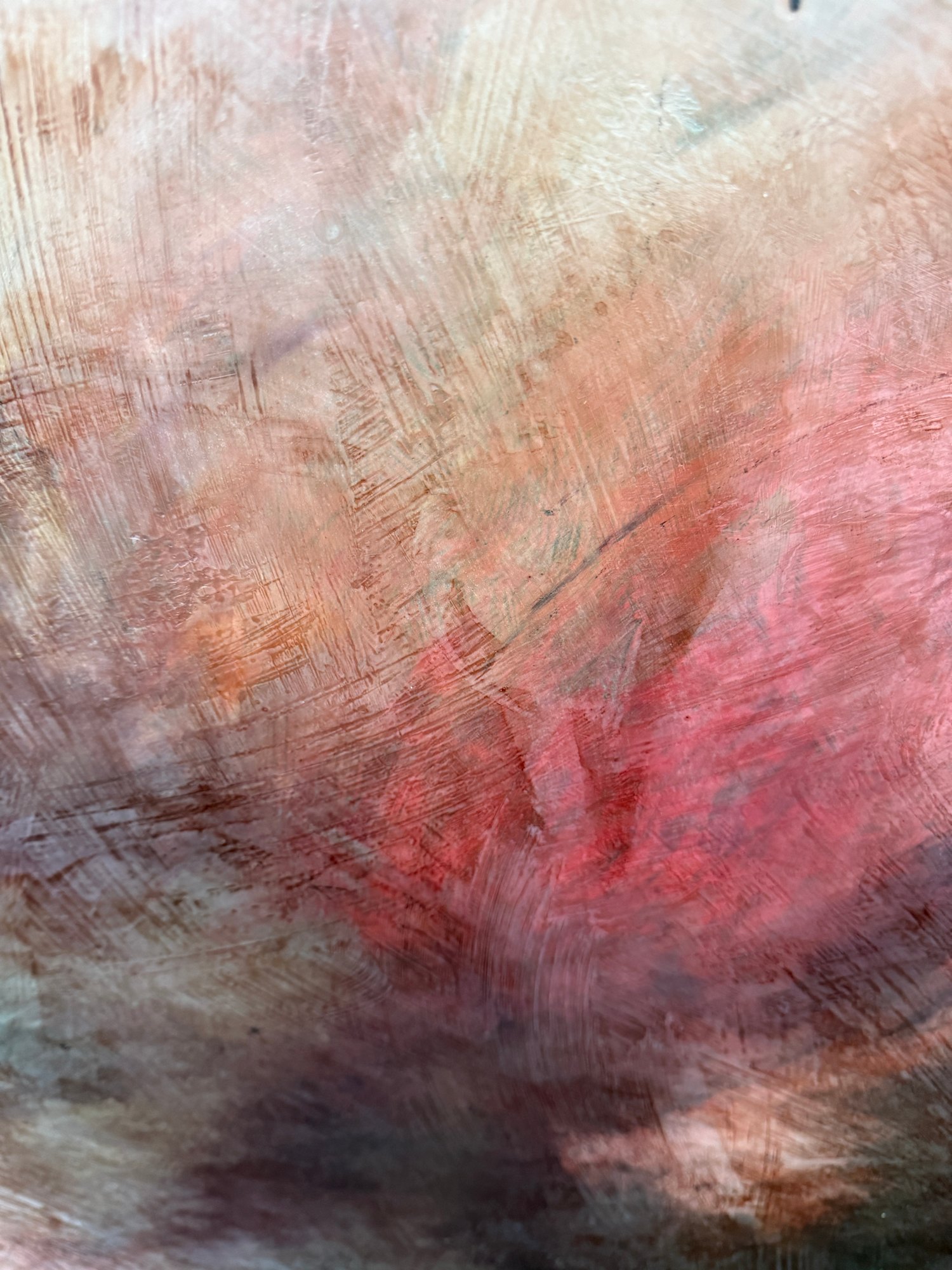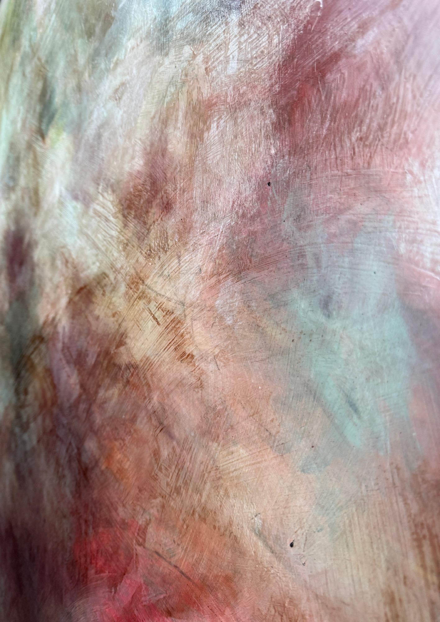 Mixed Media : Encaustic Wax, Acrylic, Stain on Wood, Solid Iron Frame