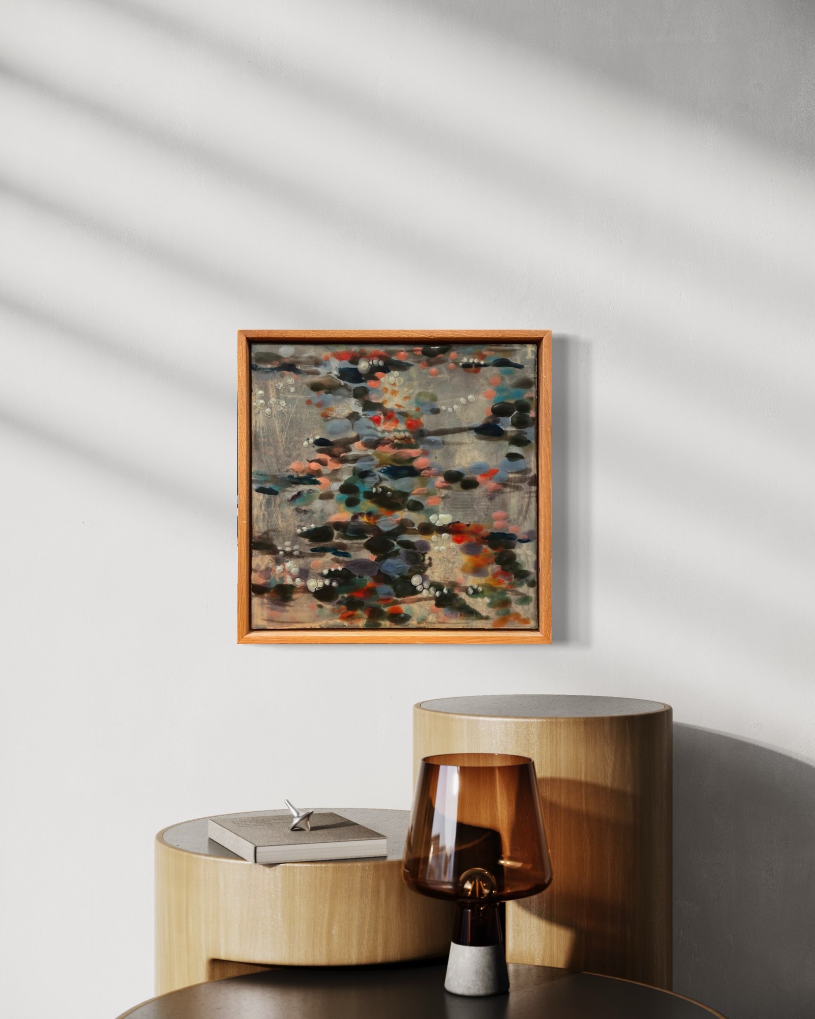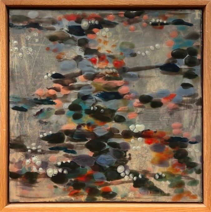 Mixed Media : Encaustic Wax, Acrylic, Oil, Collage & 24k Gold on Wood, Oak Frame