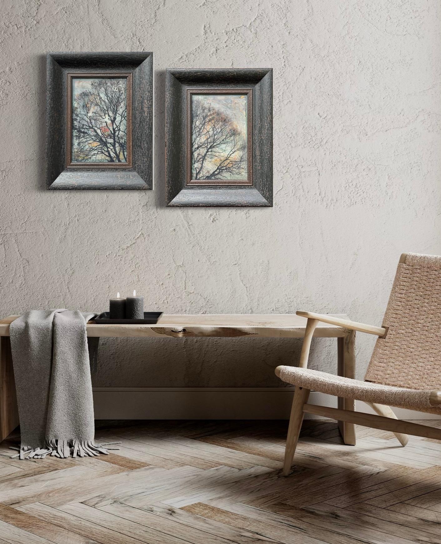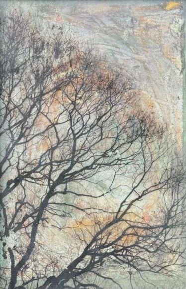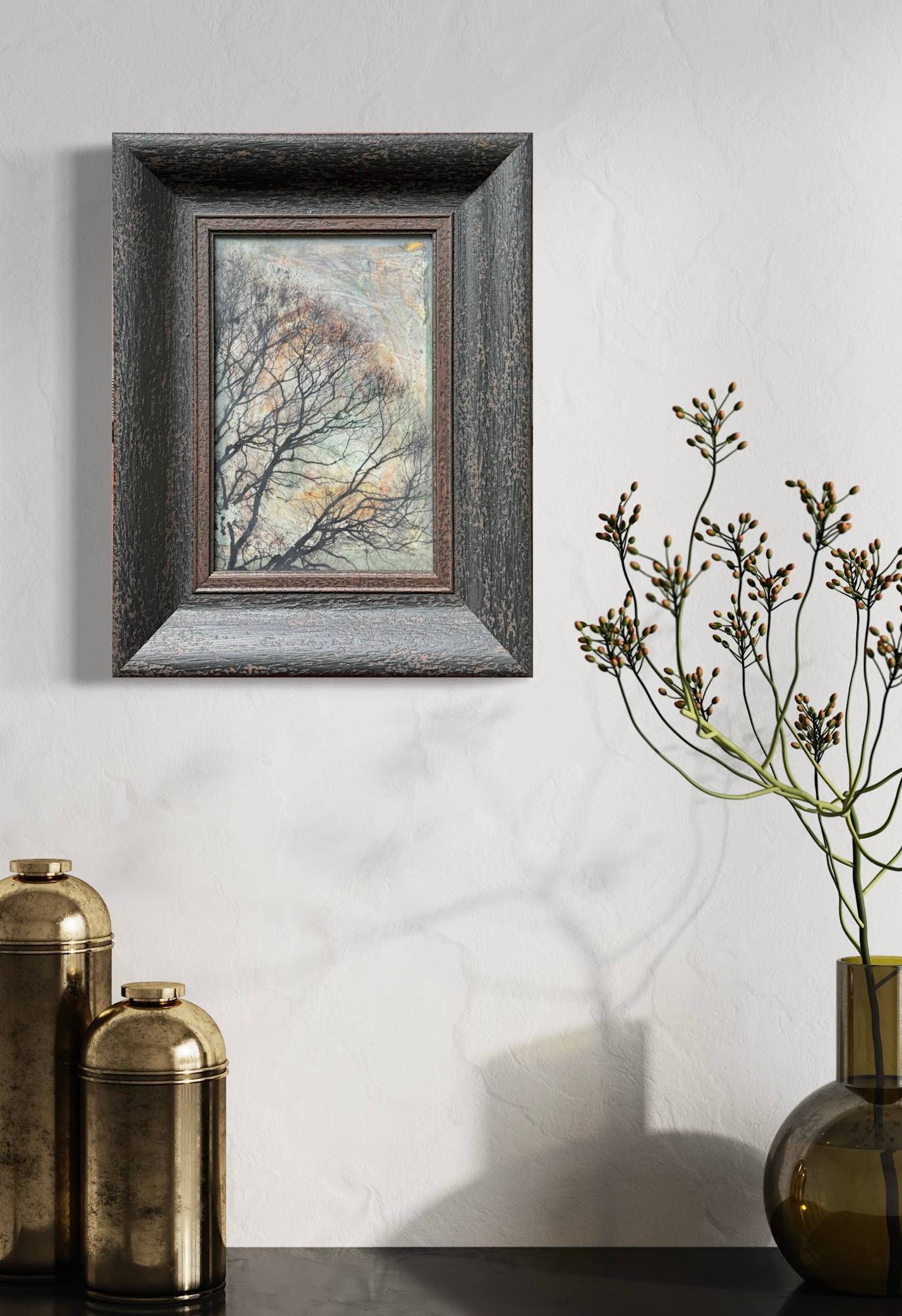 Mixed Media : Encaustic Wax, Oil, Paper, Transfer, 24k Gold, Wood Mounted, Wood Frame
