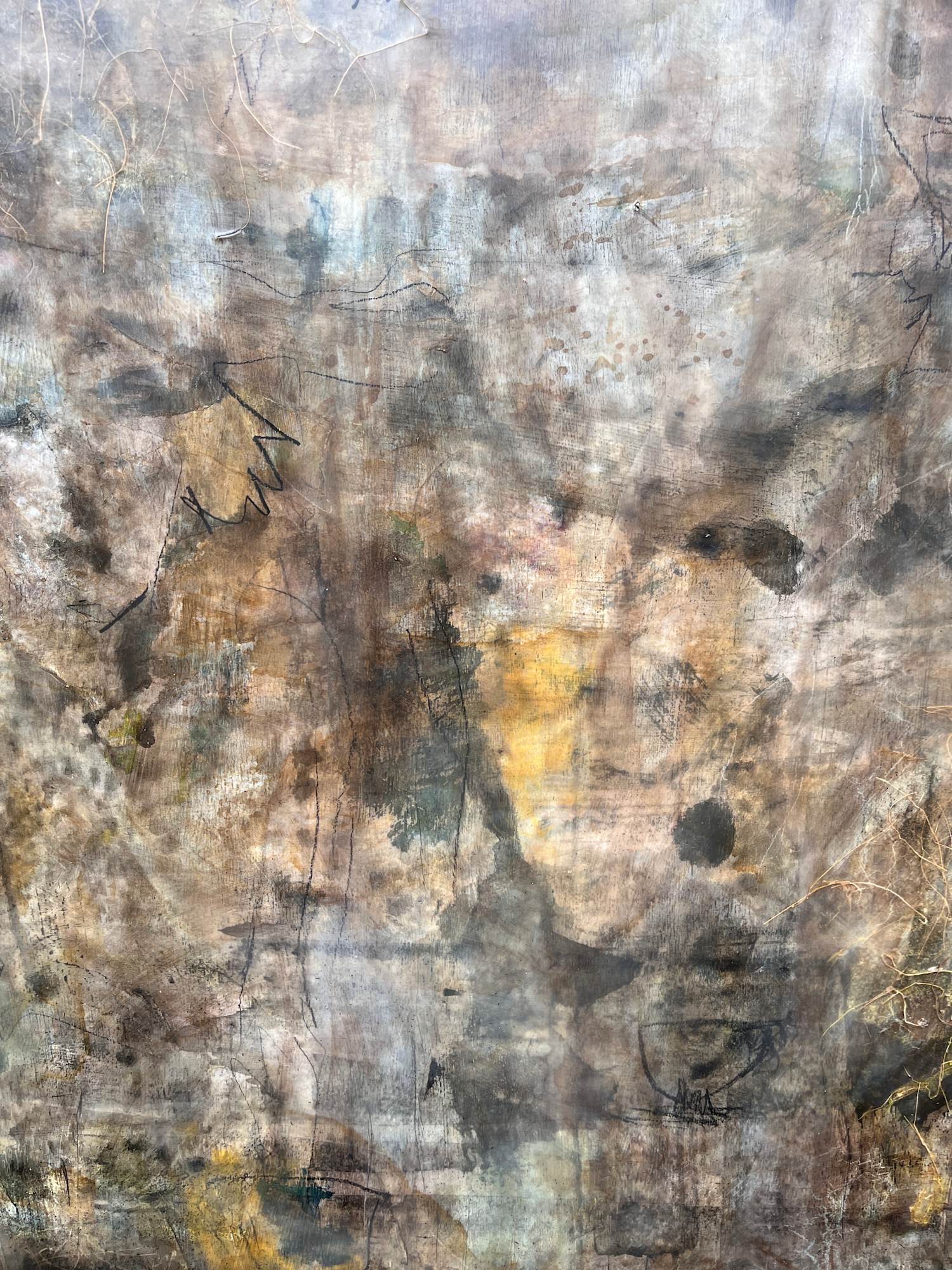 Mixed Media : Encaustic Wax , Acrylic, Oil, Ink, Harakeke, Collage, Ash on Wood, Solid Oak Frame