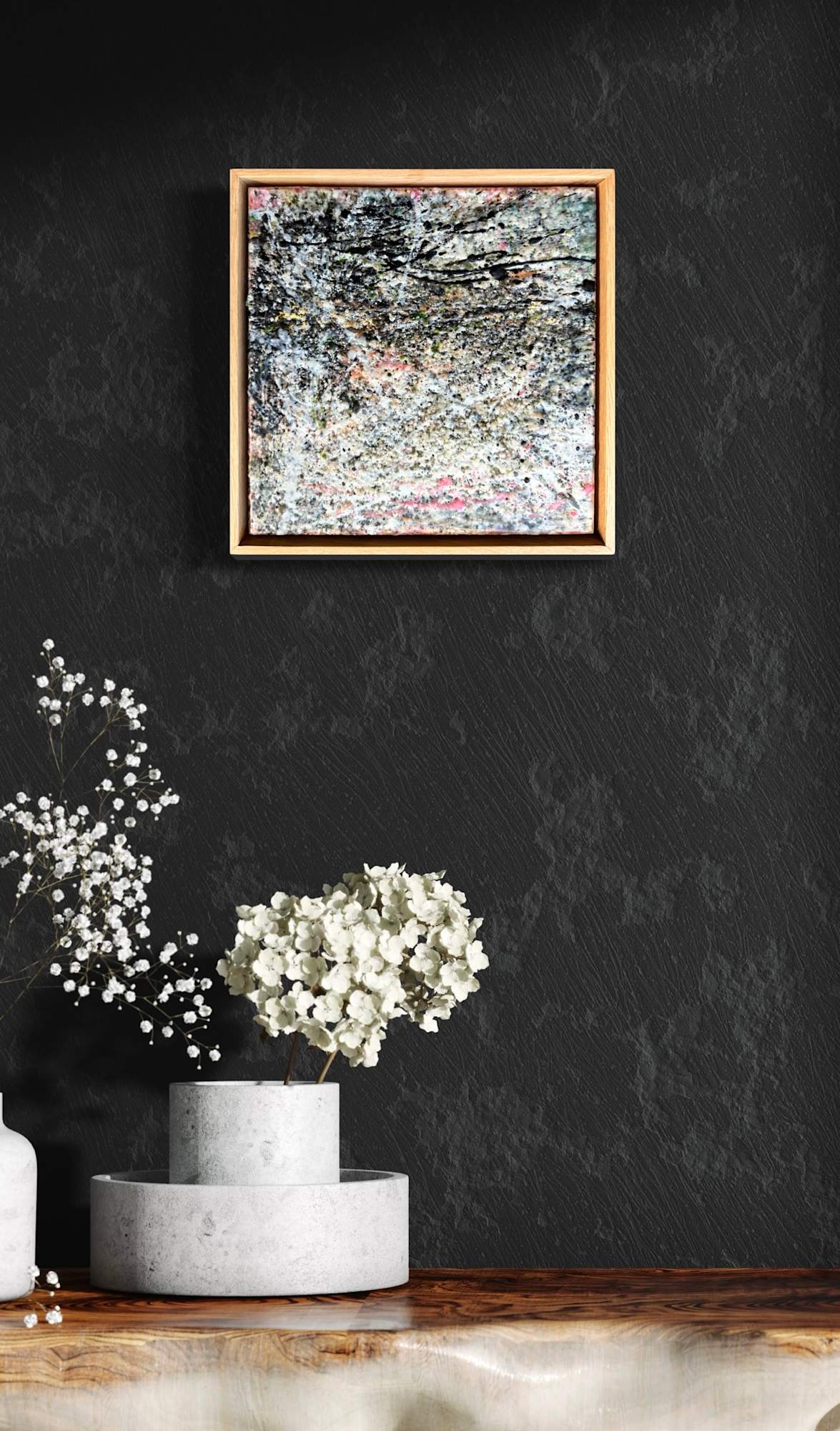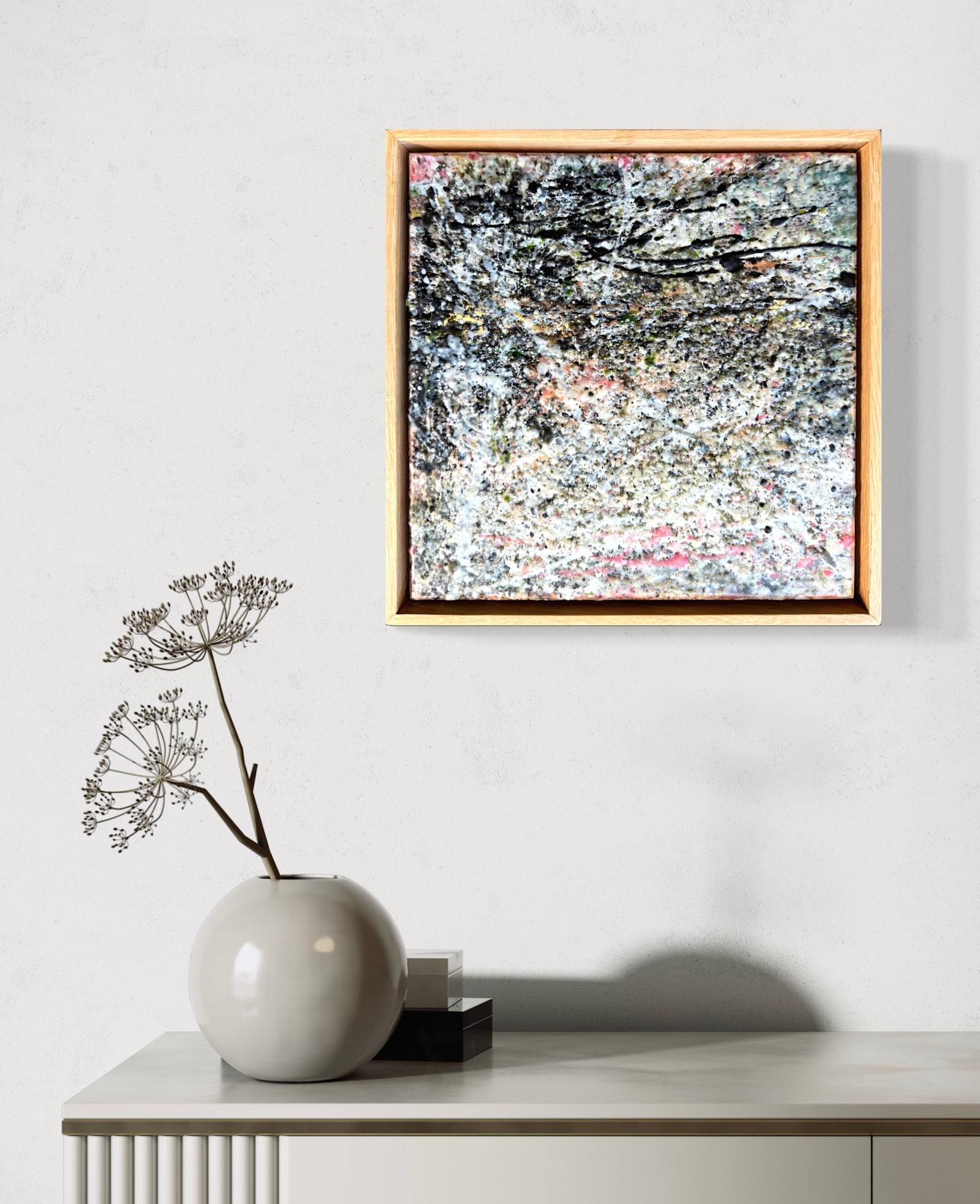 Mixed Media : Solid Encaustic Wax, Oil, Collage on Wood, Solid Oak Frame