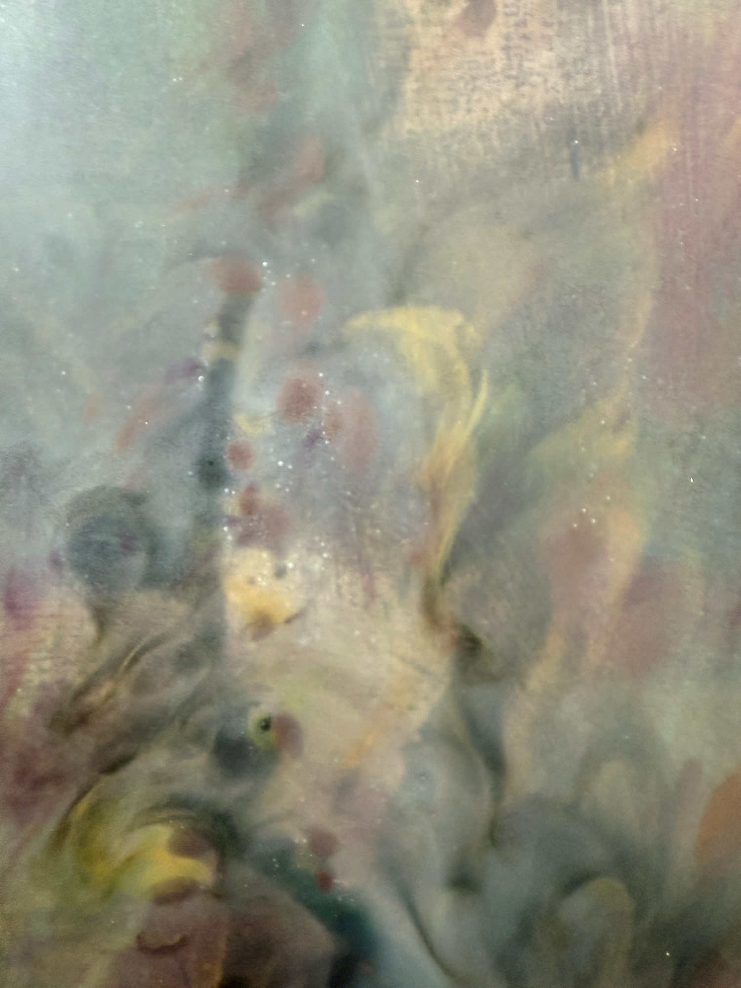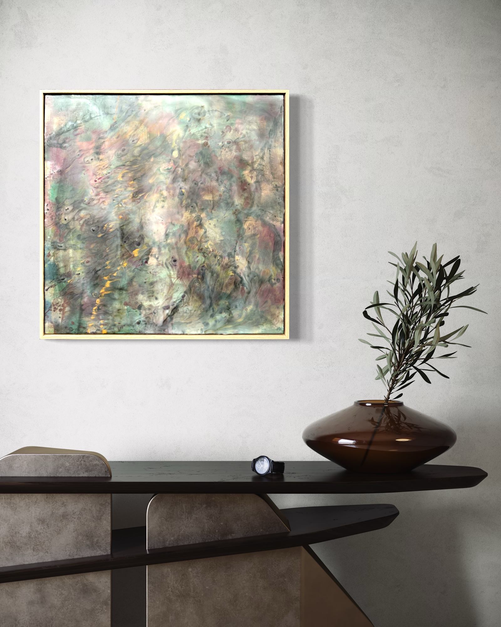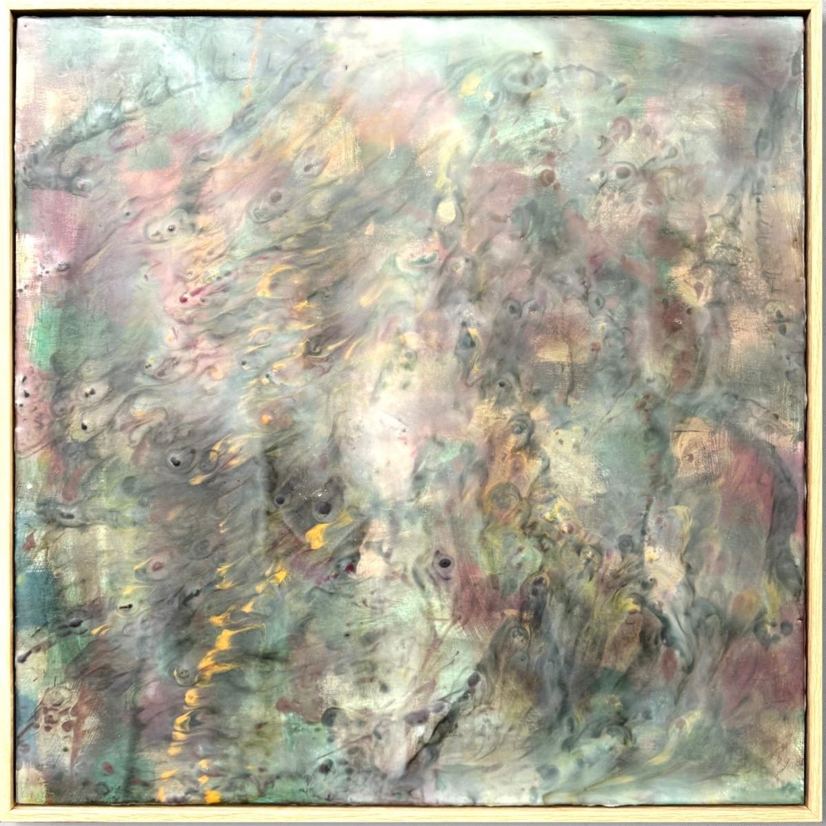 Mixed Media : Encaustic Wax, Acrylic on Wood, Solid Oak Frame