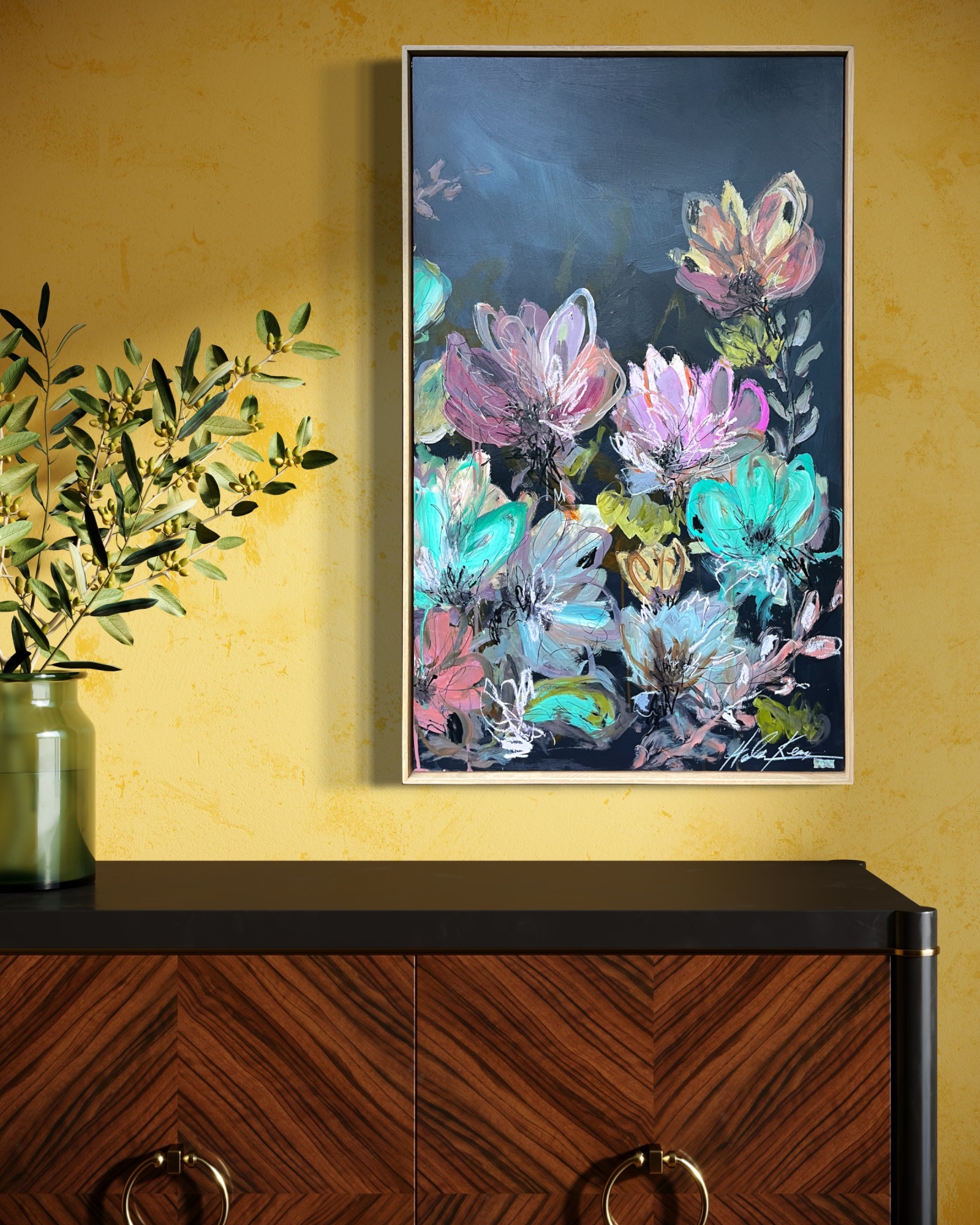 Mixed Media : Acrylic, Oil & Collage on Wood, Oak Frame