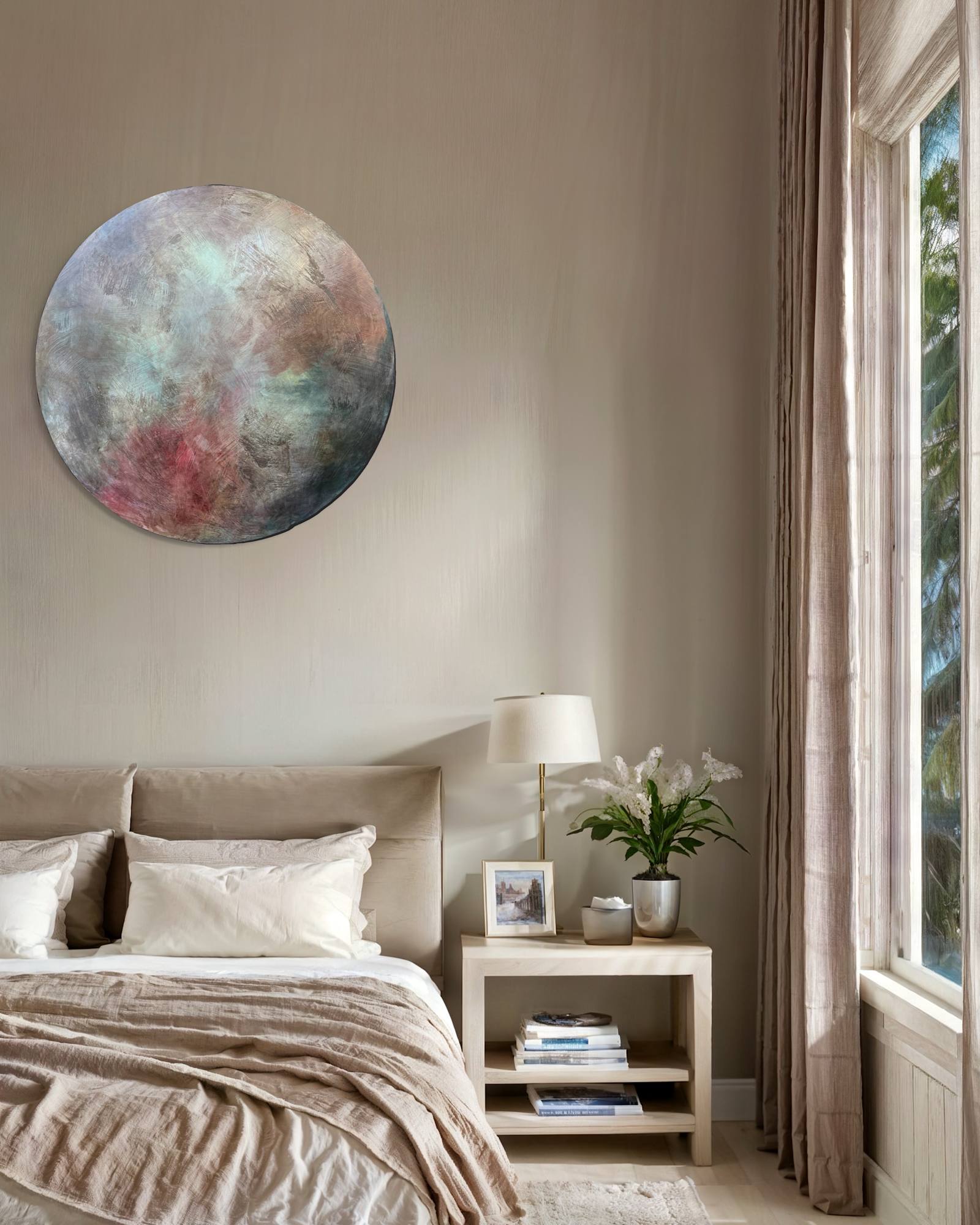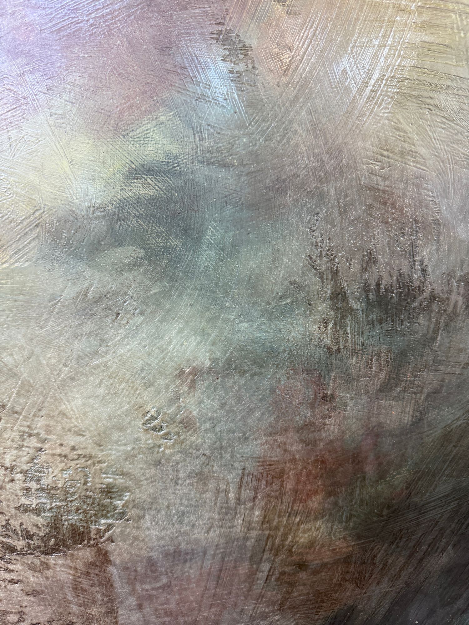 Mixed Media : Encaustic Wax, Acrylic, Stain on Wood, Solid Iron Frame