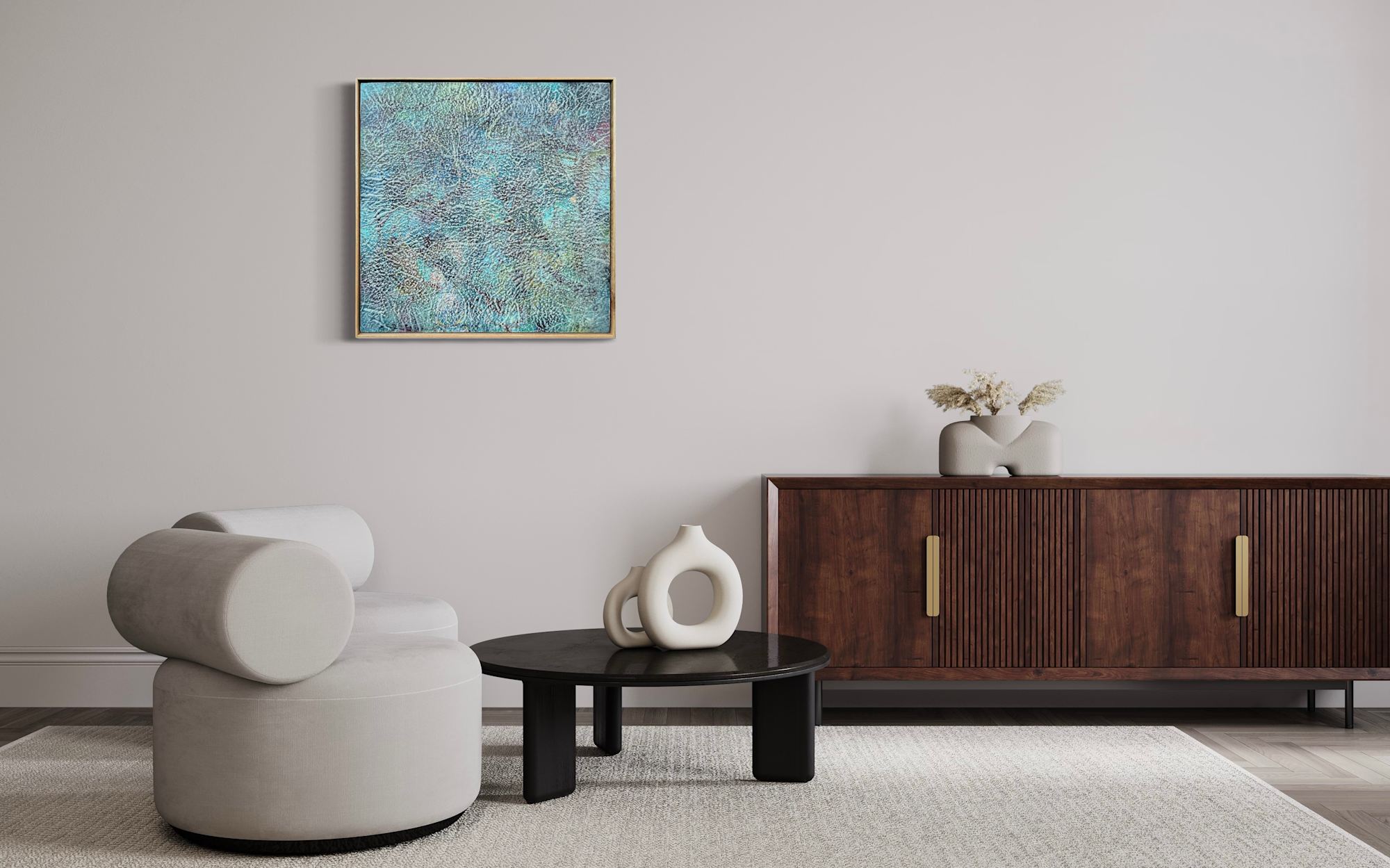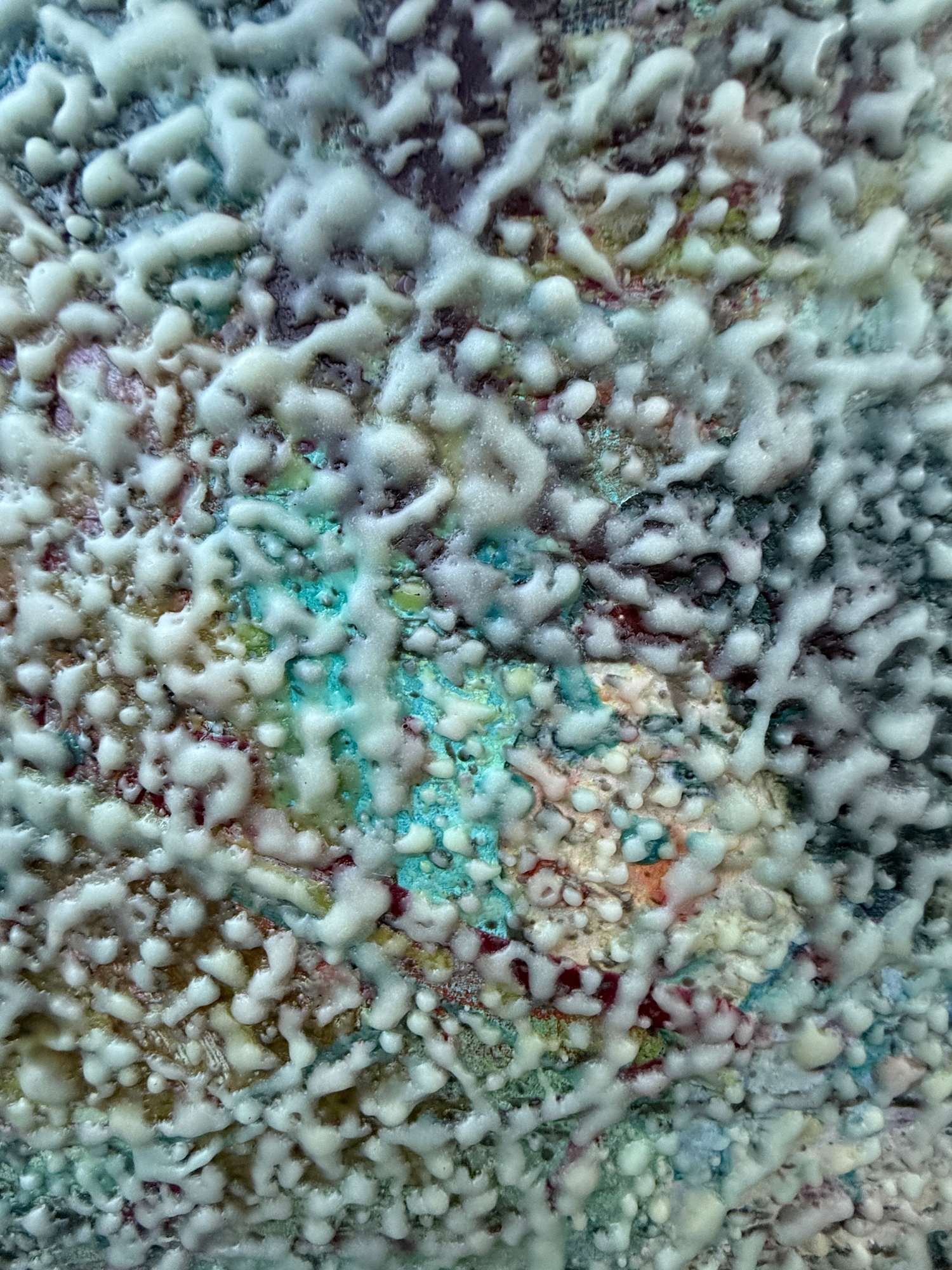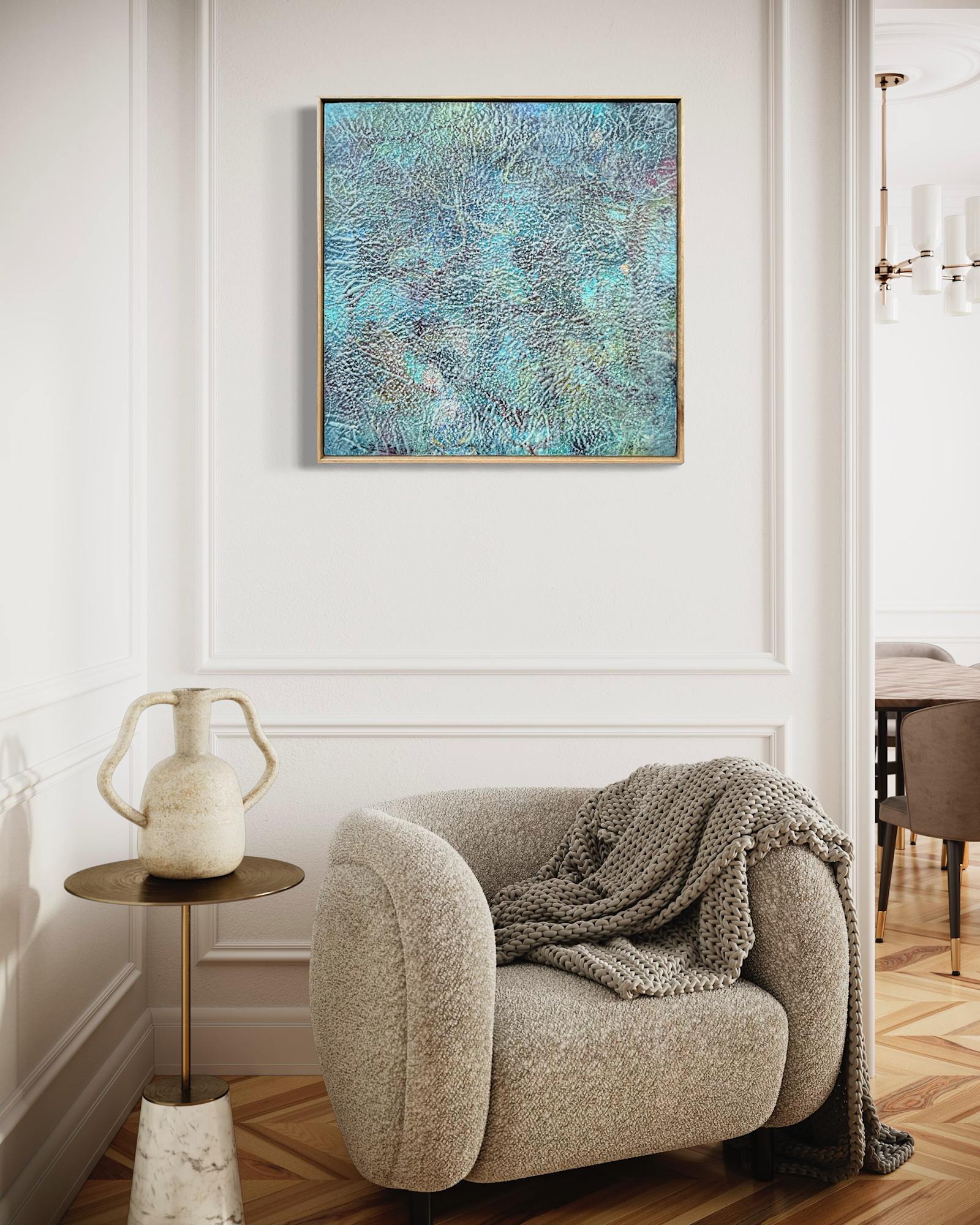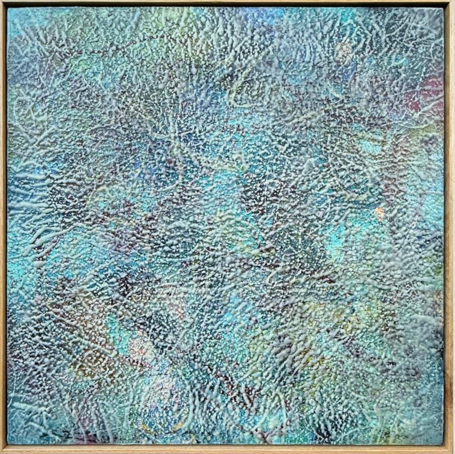 Mixed Media : Encaustic Wax, Acrylic, Collage, 24k Gold on Wood, Solid Oak Frame
