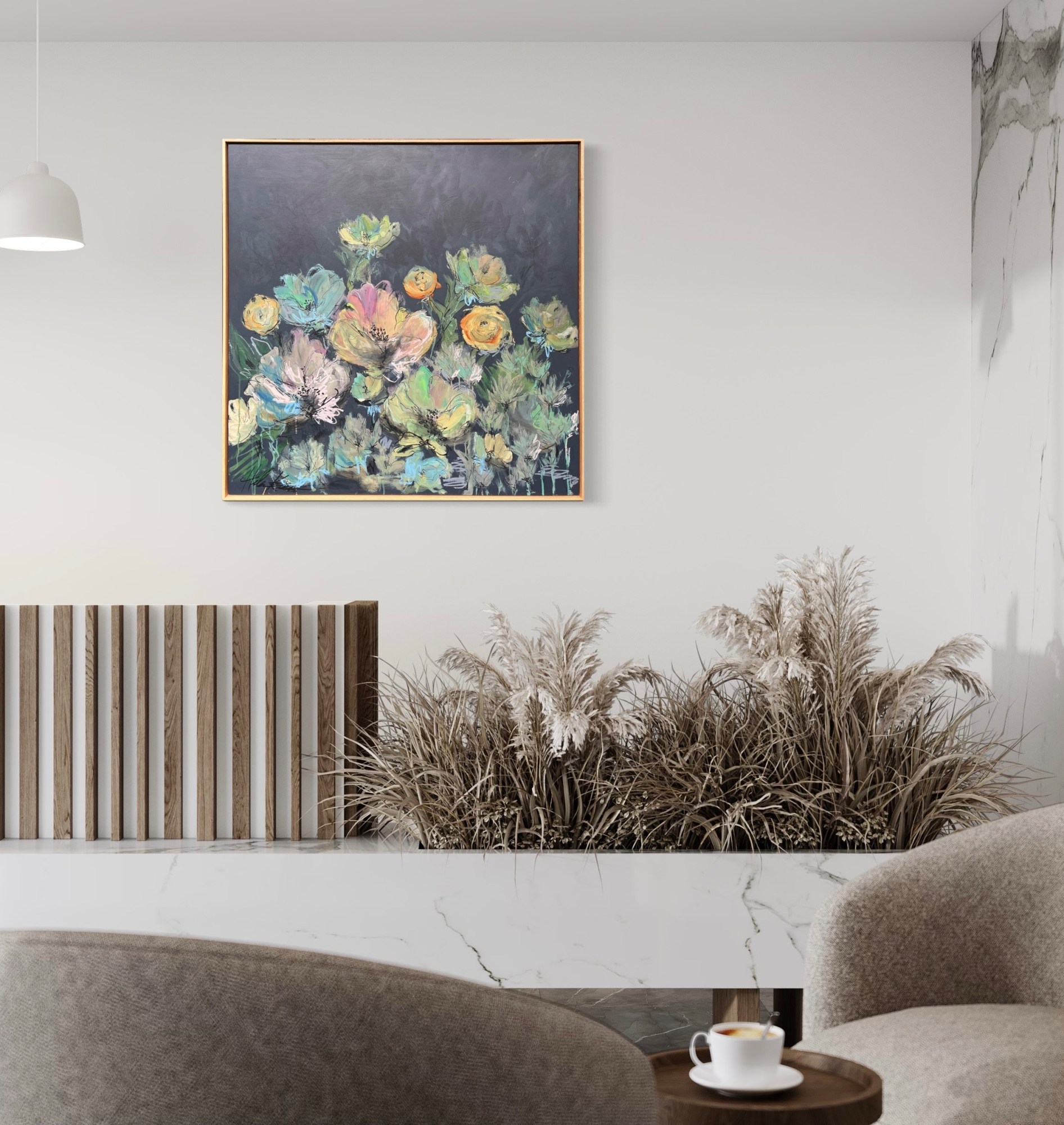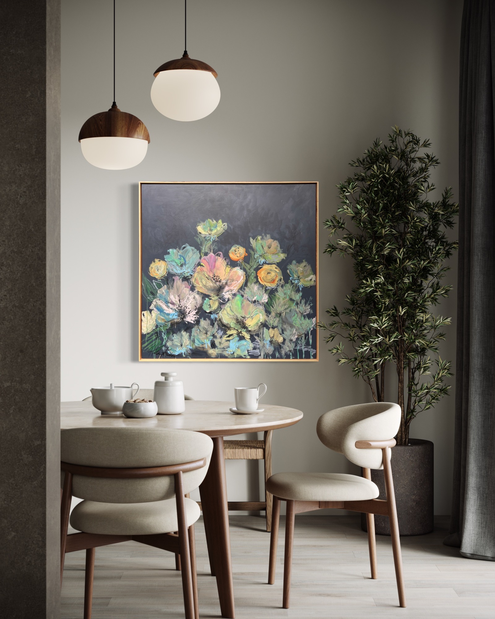 Mixed Media : Acrylic & Oil on Wood, Oak Frame
