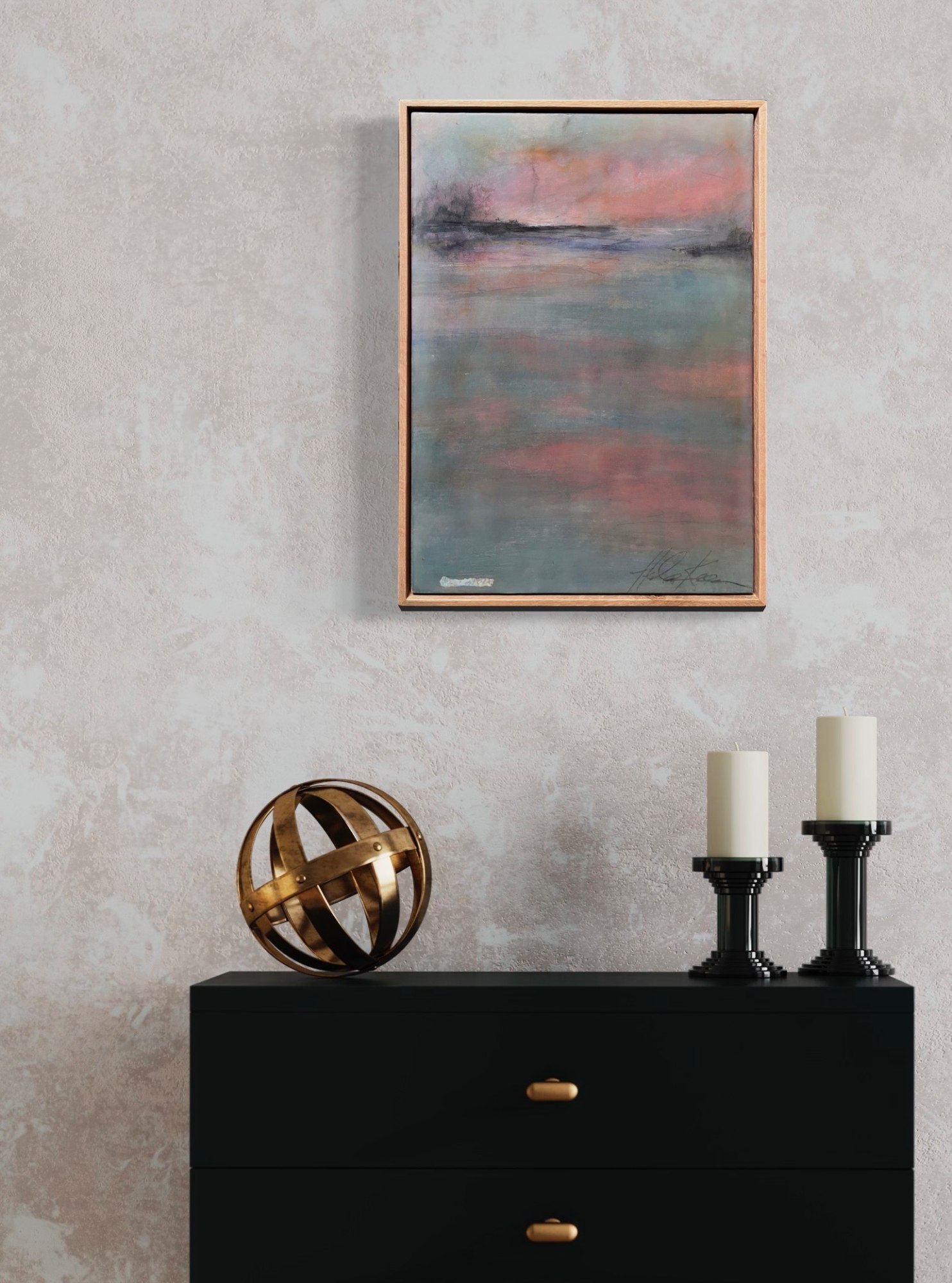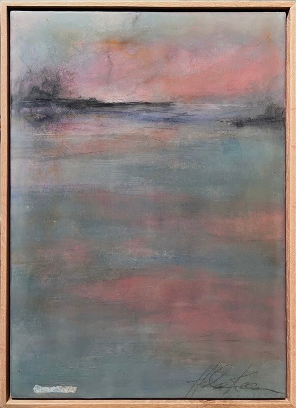 Mixed Media : Encaustic Wax & Acrylic on Wood, Oak Frame