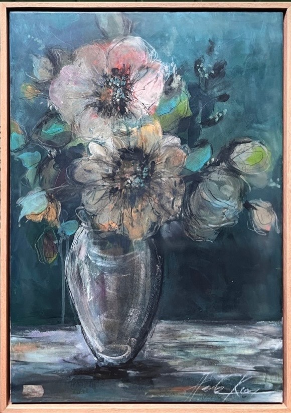 Mixed Media : Encaustic Wax & Acrylic on Wood, Oak Framed