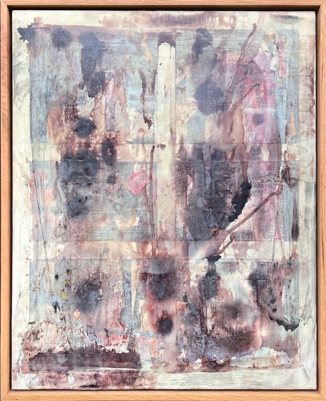 Mixed Media : Encaustic Wax, Ink, Acrylic, Paper, 24k Gold on Paper, Wood Mounted, Solid Oak Frame