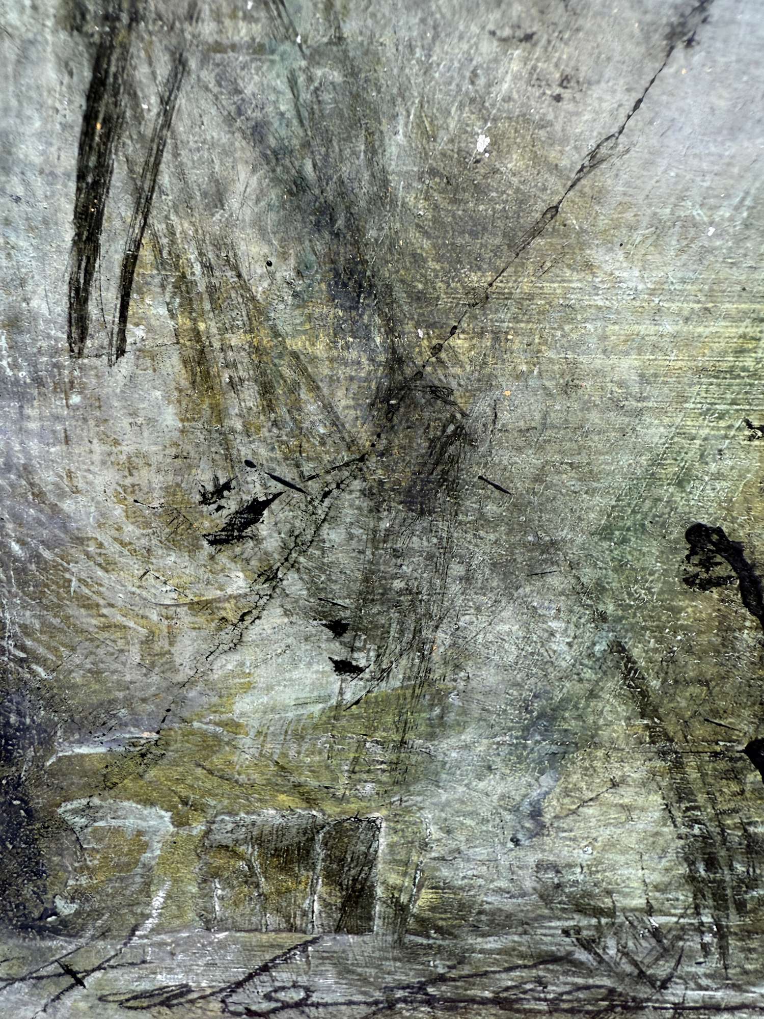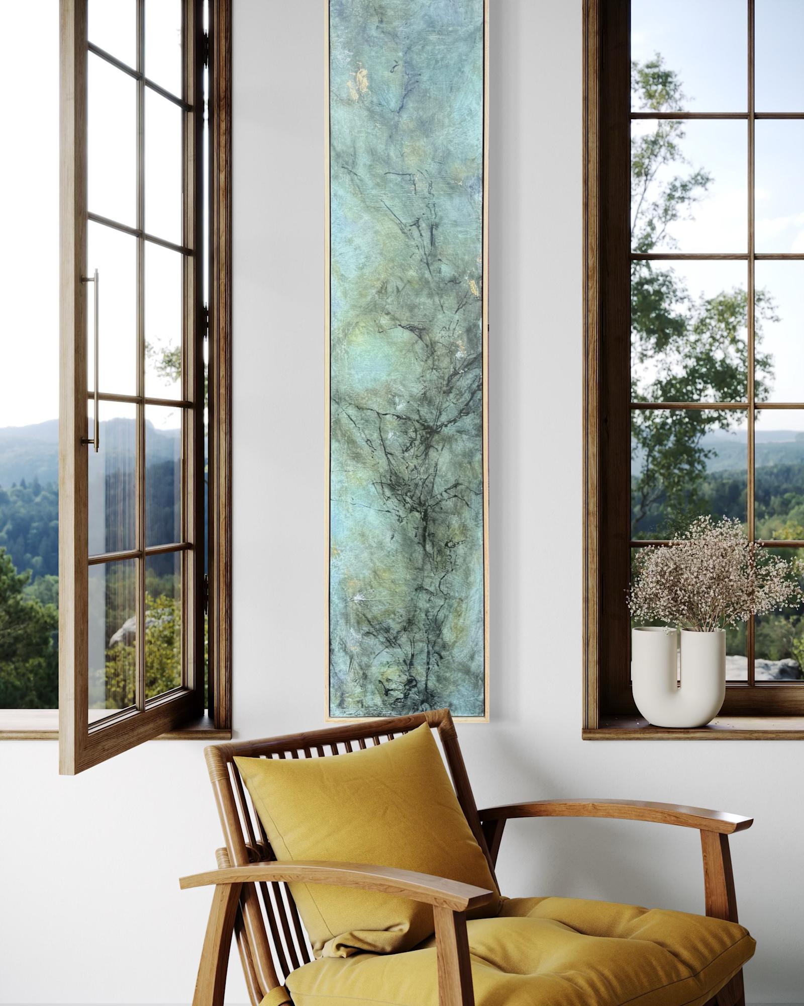 Mixed Media : Acrylic, Leaf Skeleton, Ink, Wax, 24k Gold on Wood , Solid Oak Frame