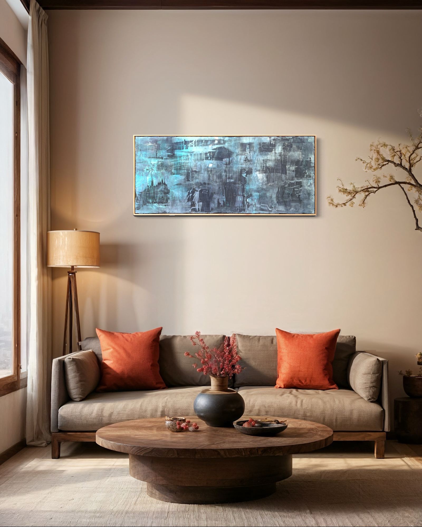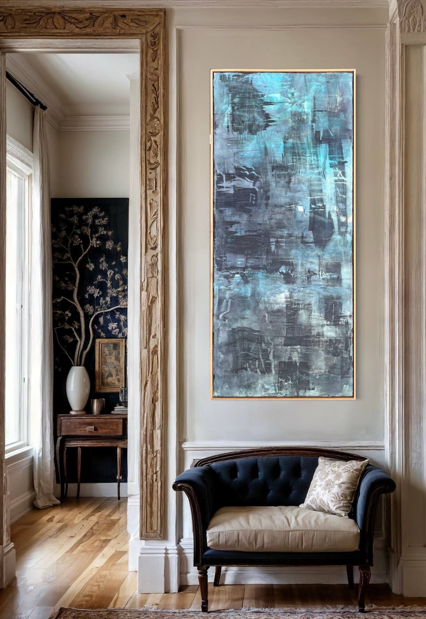 Mixed Media: Encaustic Wax, Acrylic, Oil, Ink on Wood, Solid Oak Frame