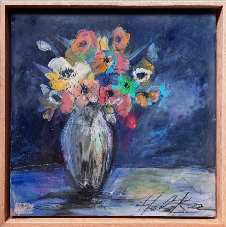 Mixed Media : Encaustic Wax, Acrylic on Wood, Solid Oak Frame