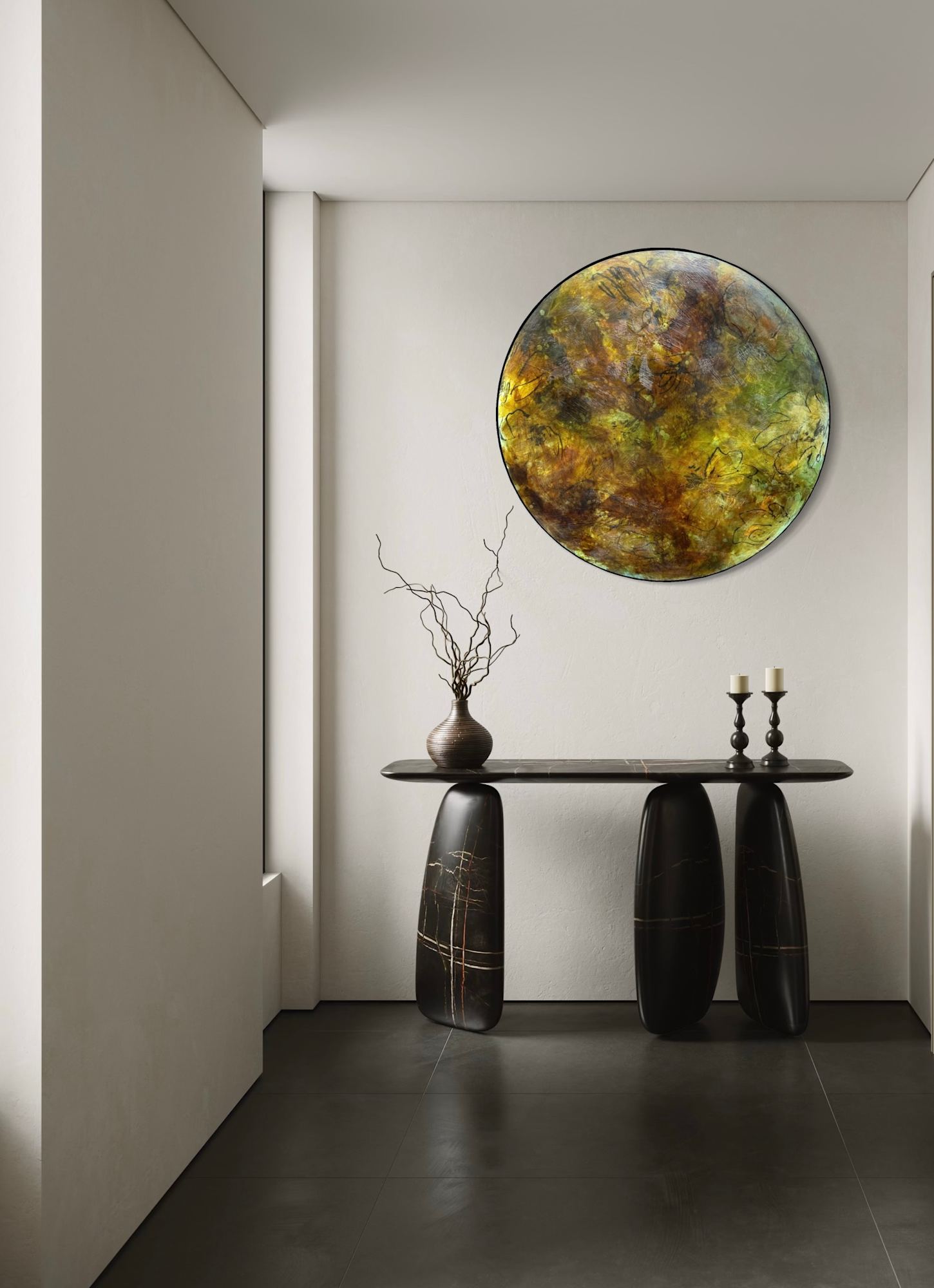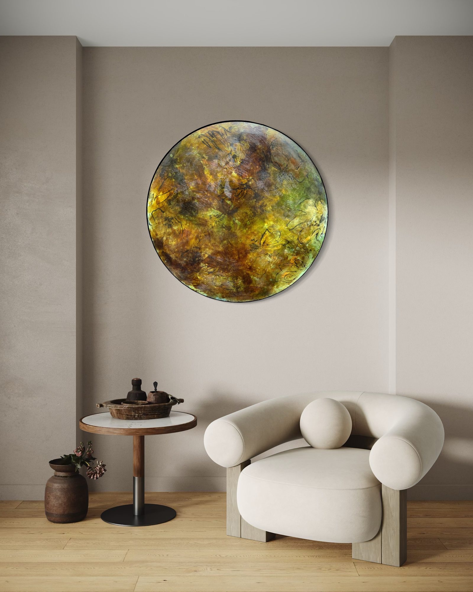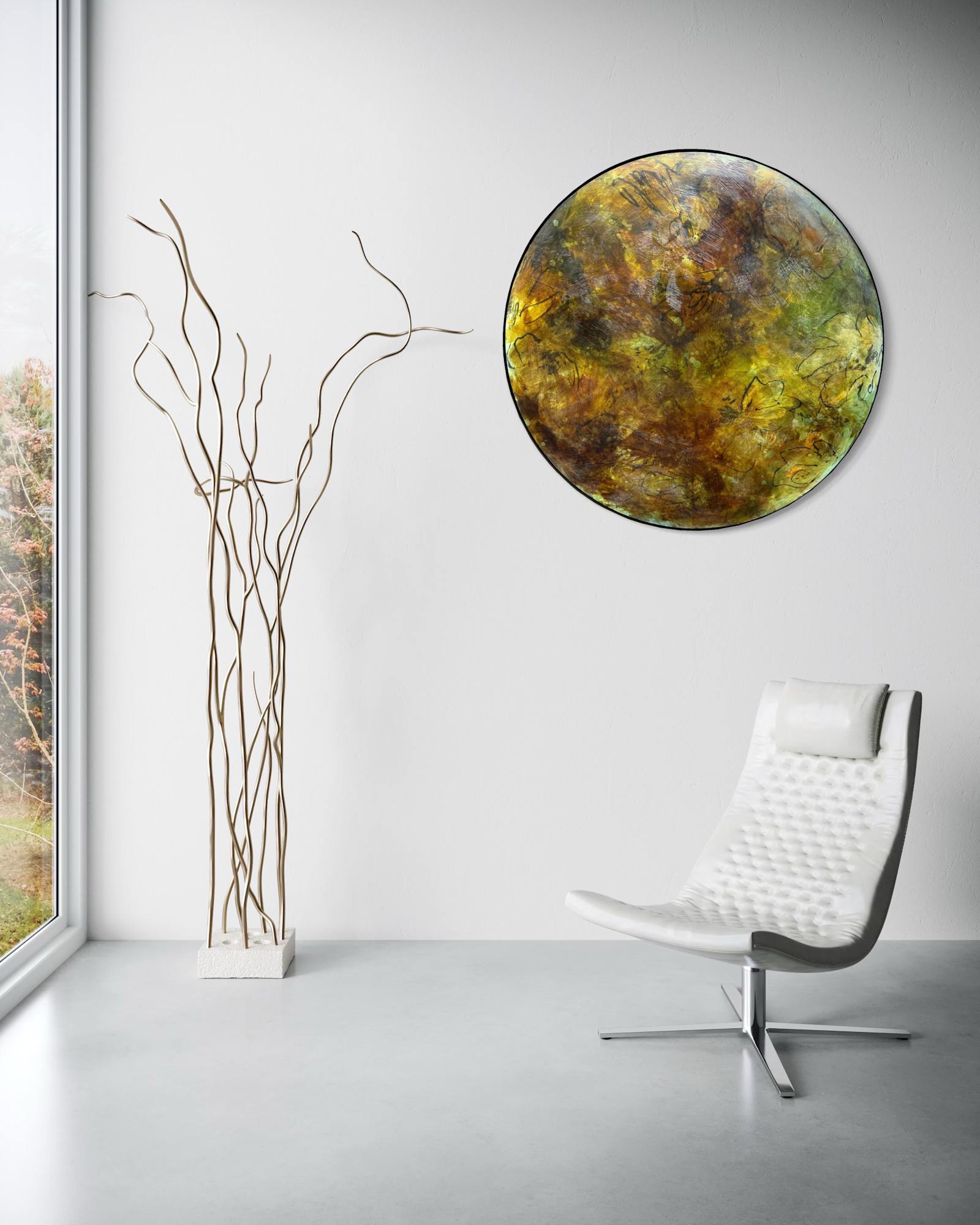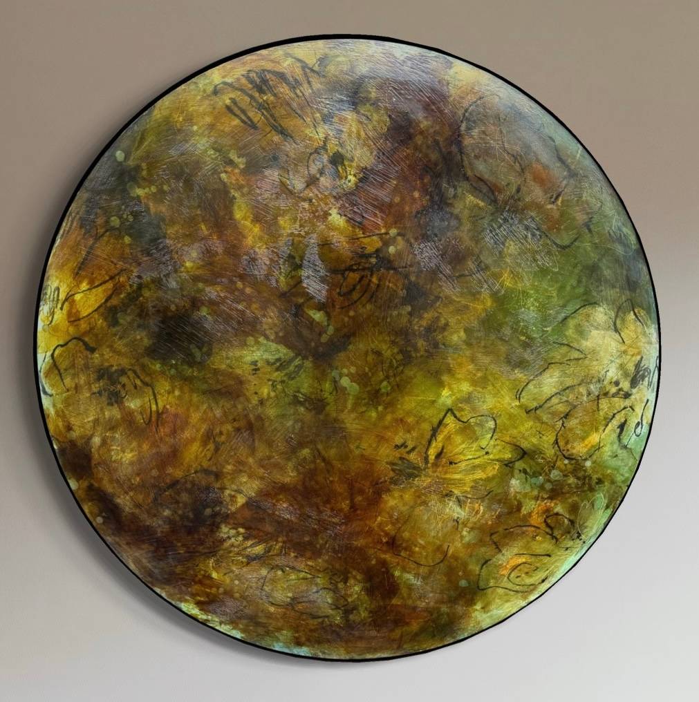 Mixed Media : Encaustic Wax, Acrylic, Oil, Stain on Wood, Solid Iron Frame