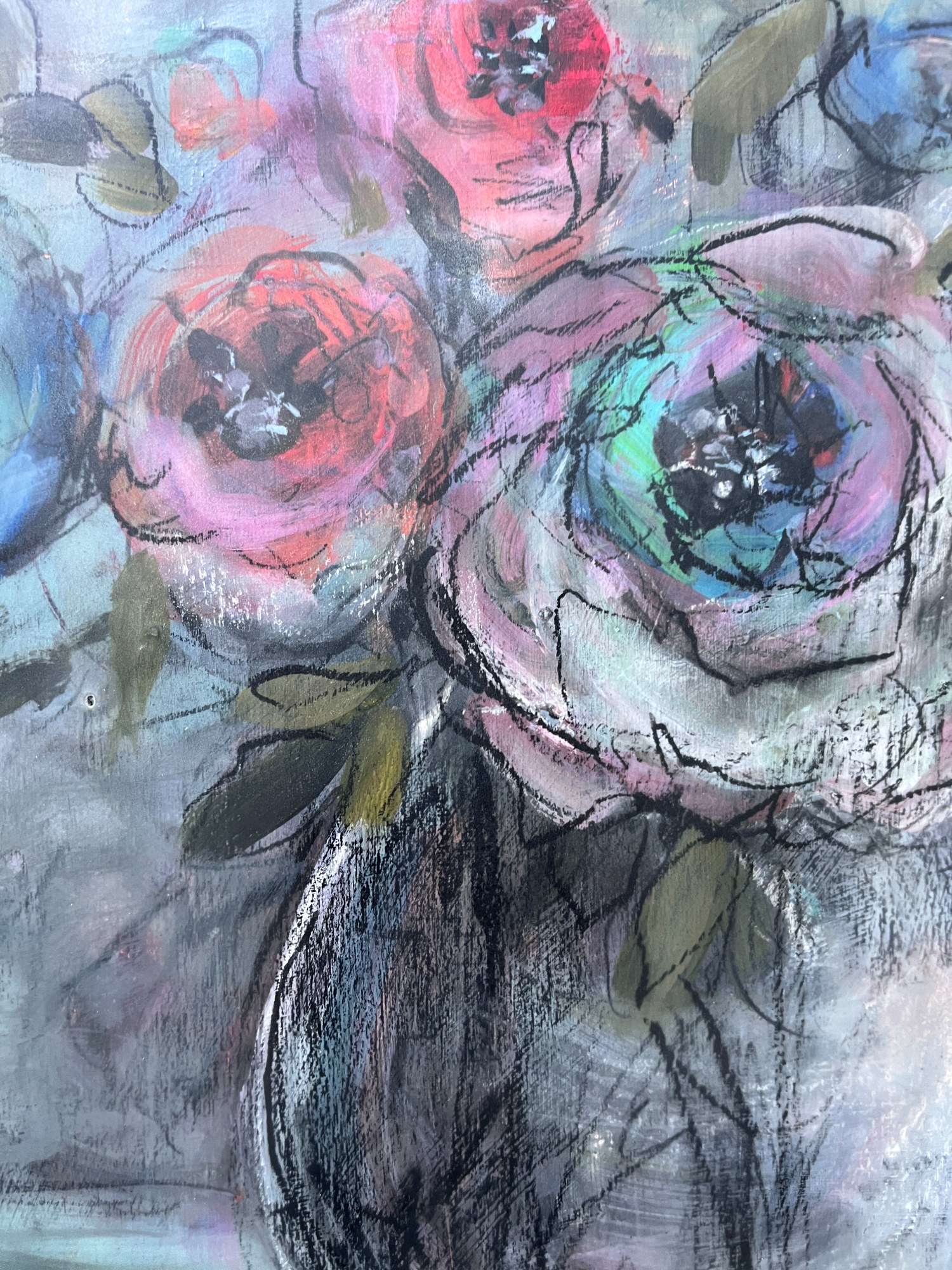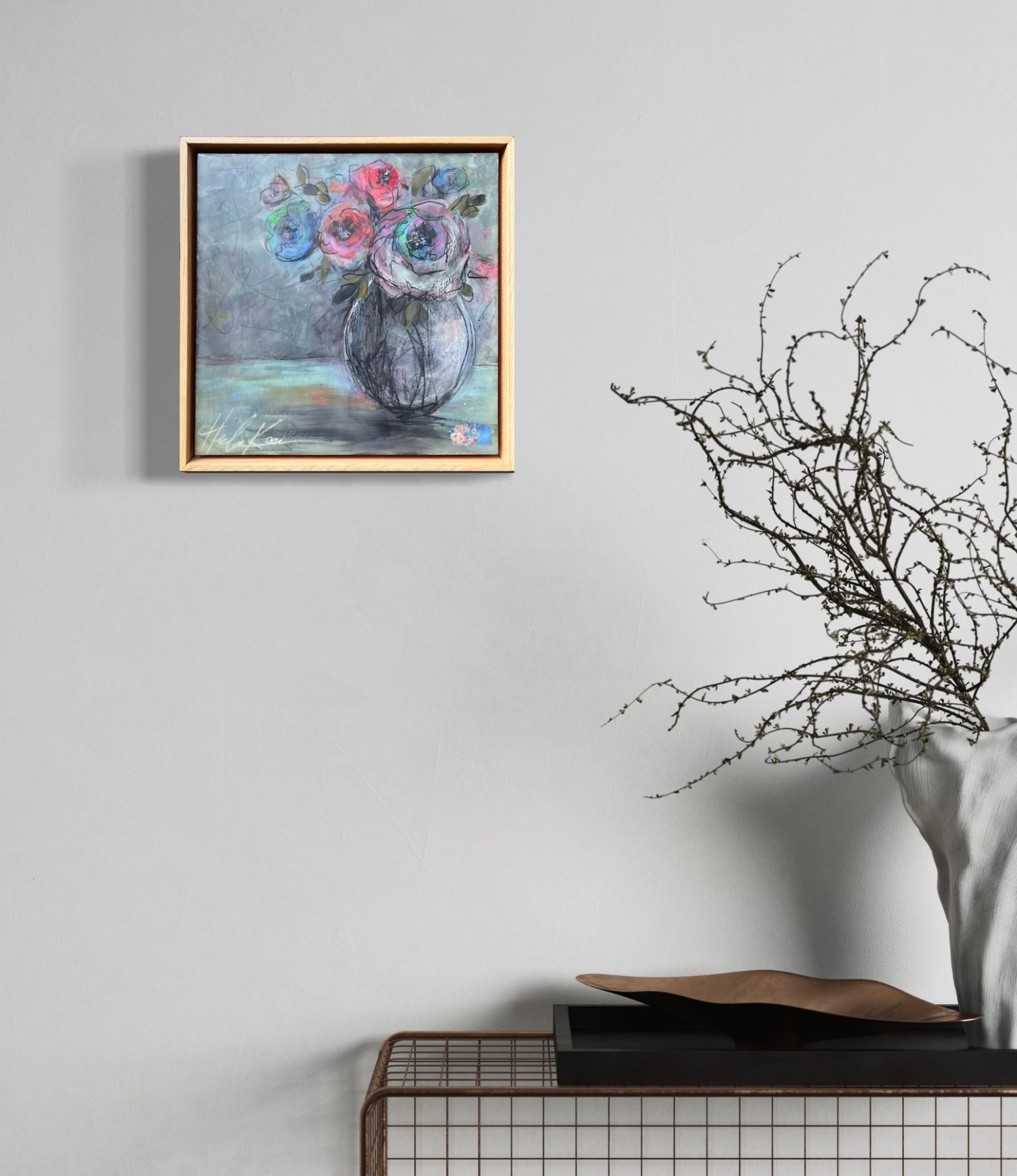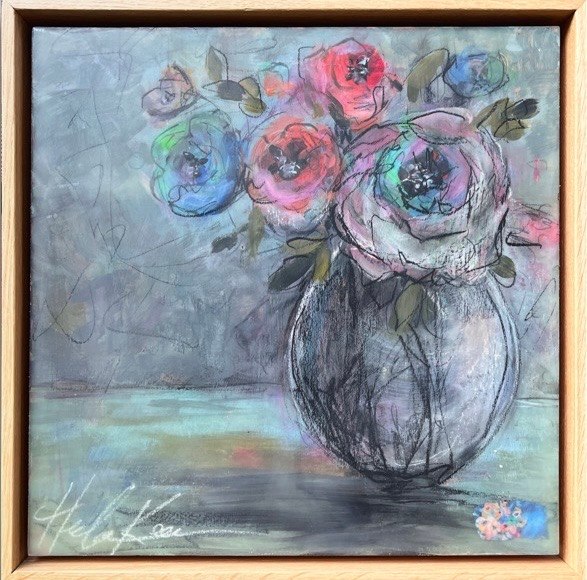 Mixed Media : Encaustic Wax & Acrylic on Wood, Oak Frame