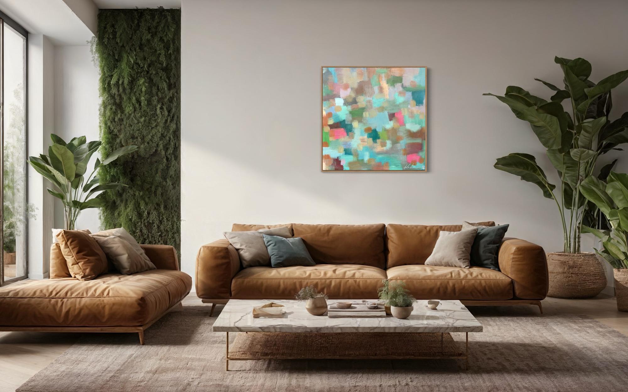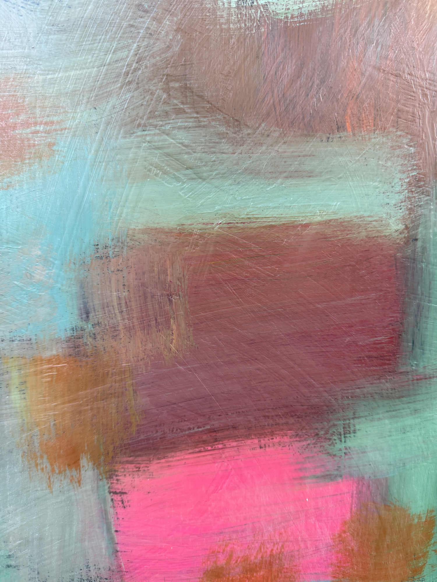 Mixed Media : Encaustic Wax, Acrylic on Wood, Solid Oak Frame