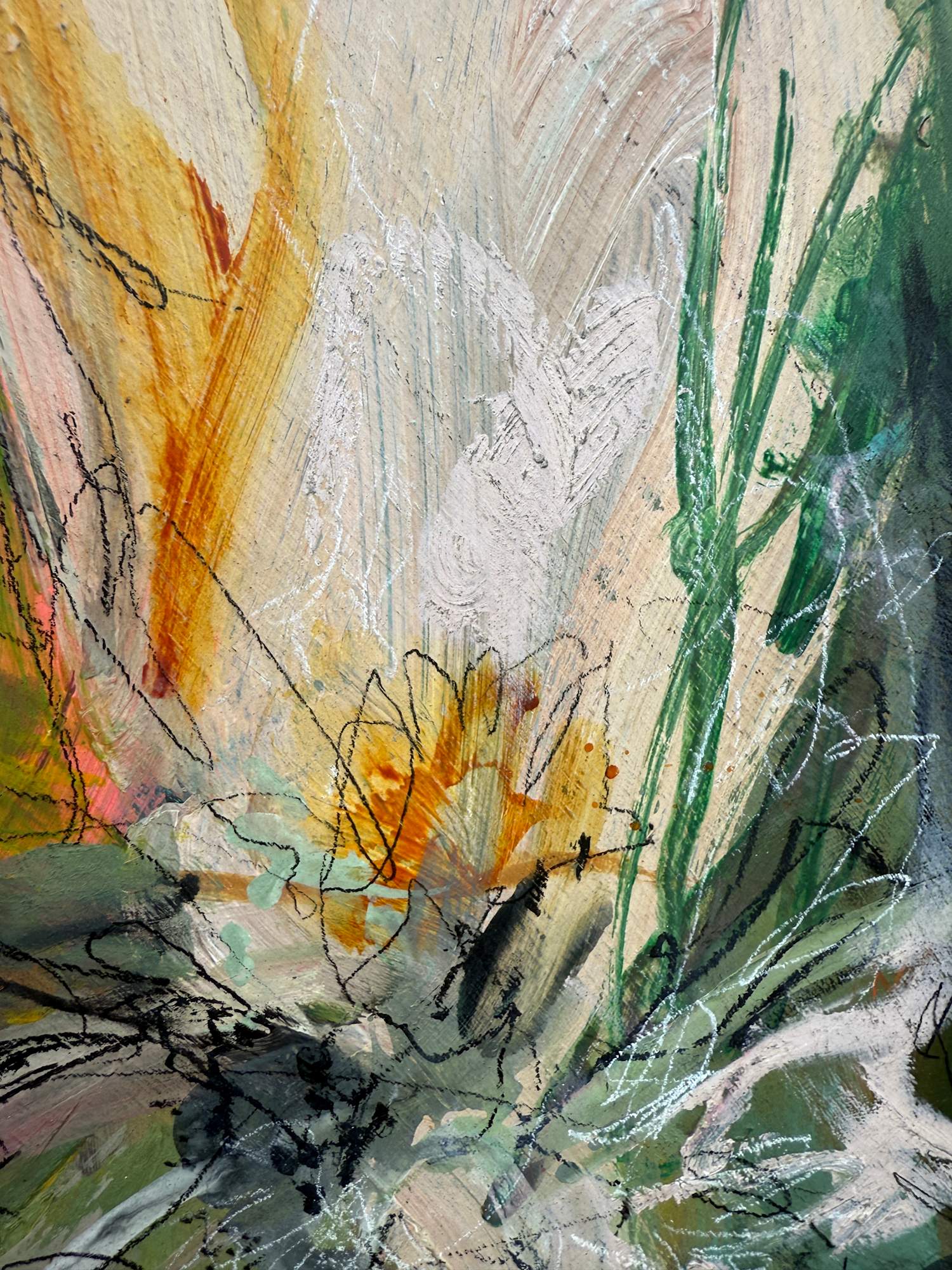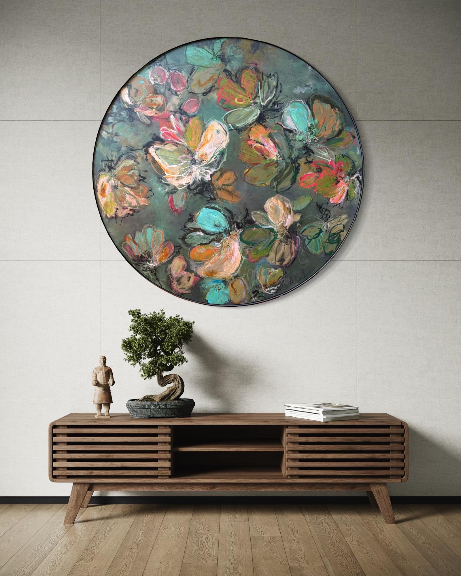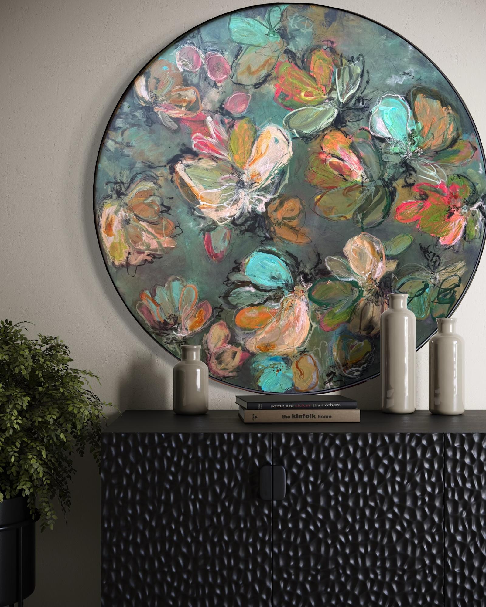 Mixed Media : Acrylic, Oil on Wood, Solid Iron Frame