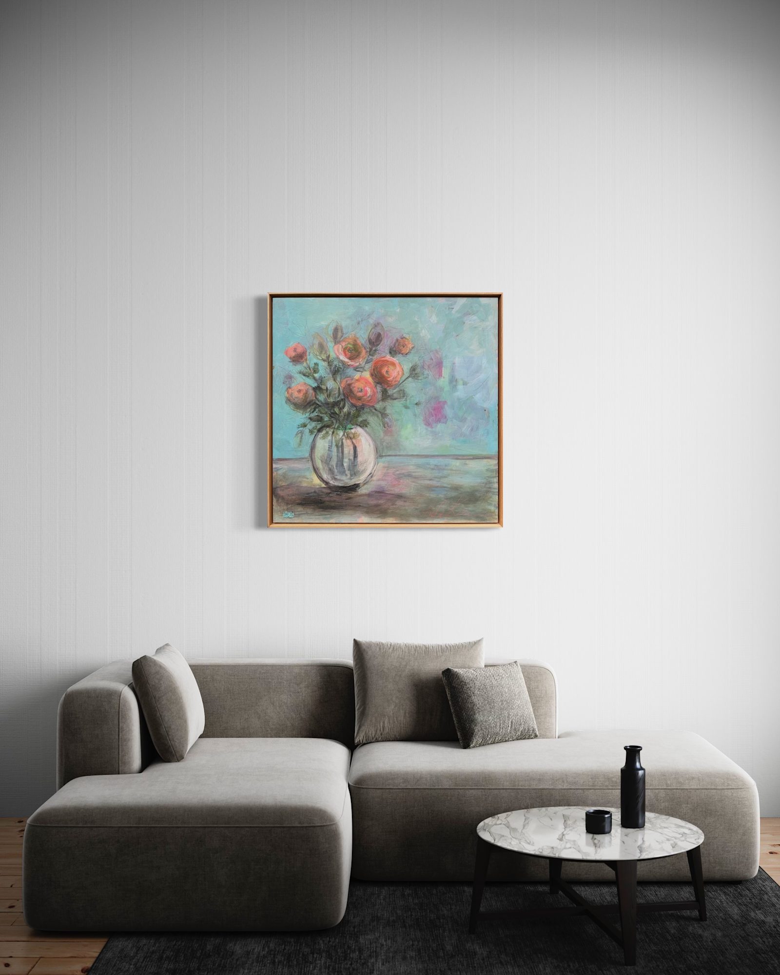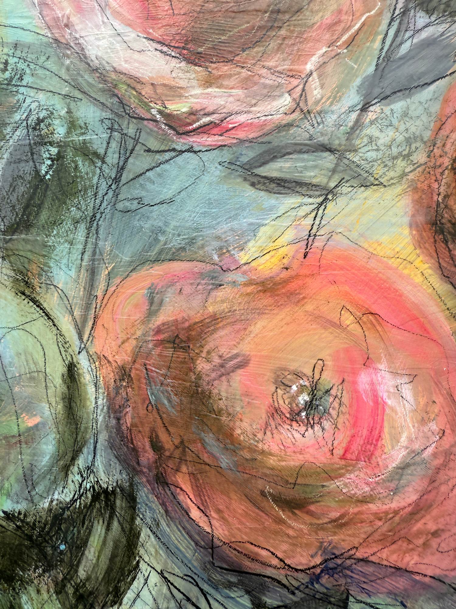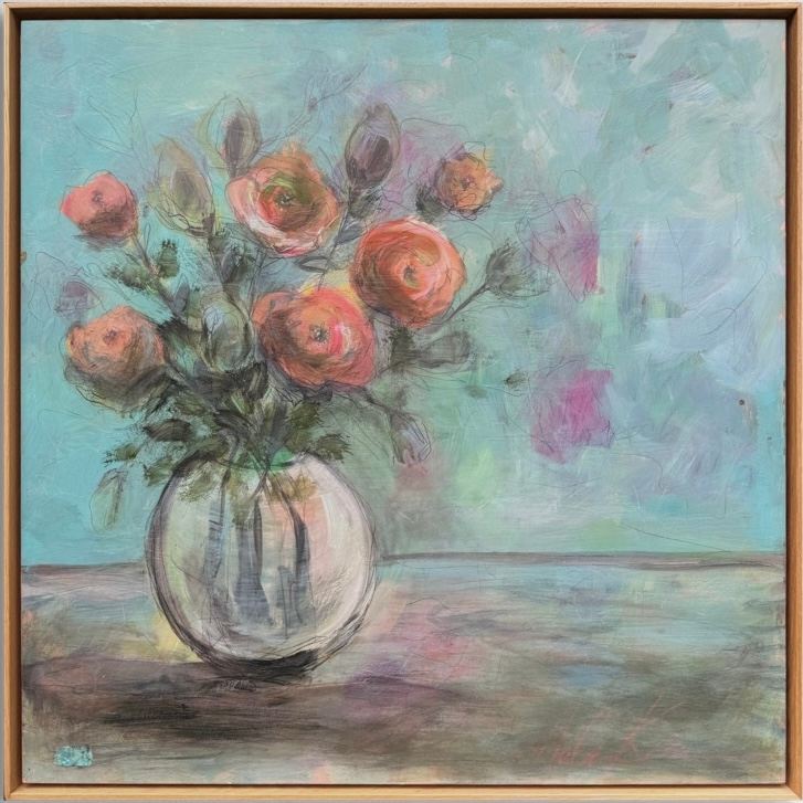 Mixed Media : Encaustic Wax, Acrylic on Wood, Solid Oak Frame