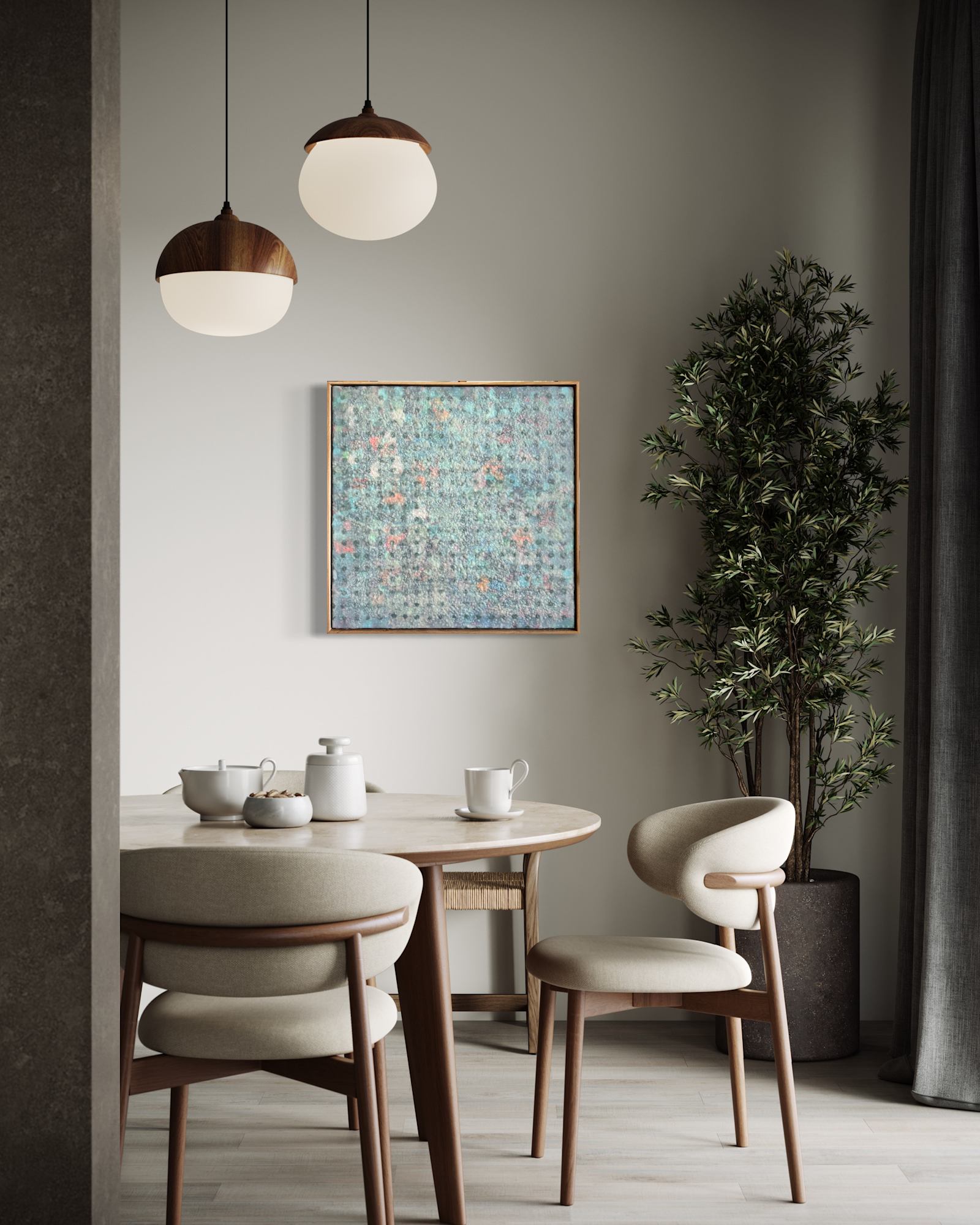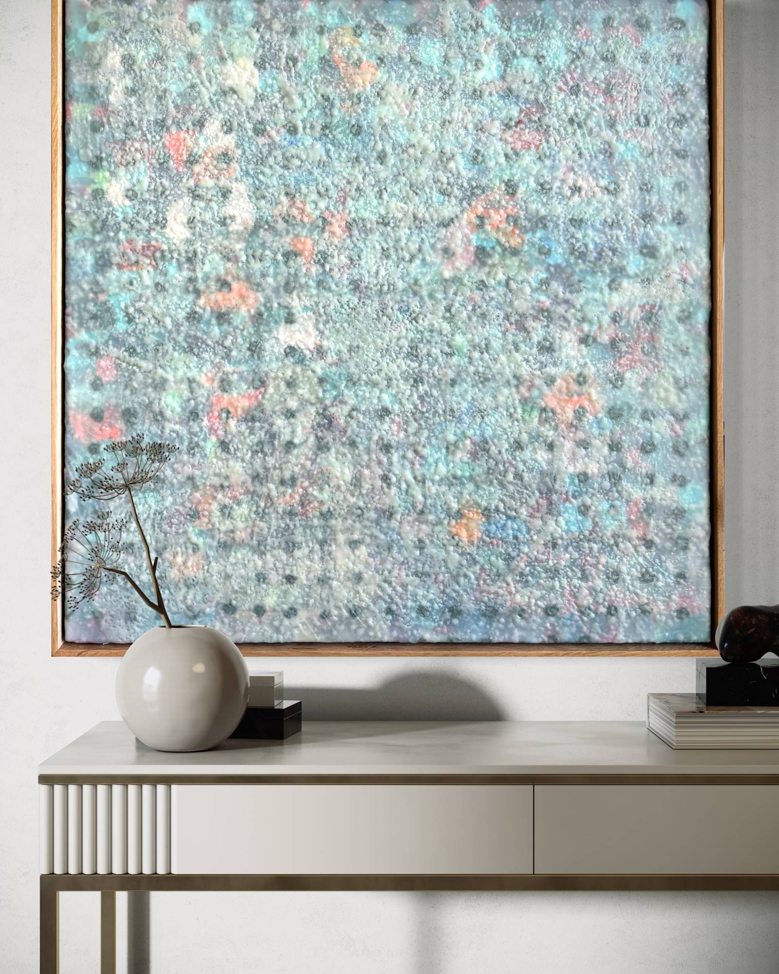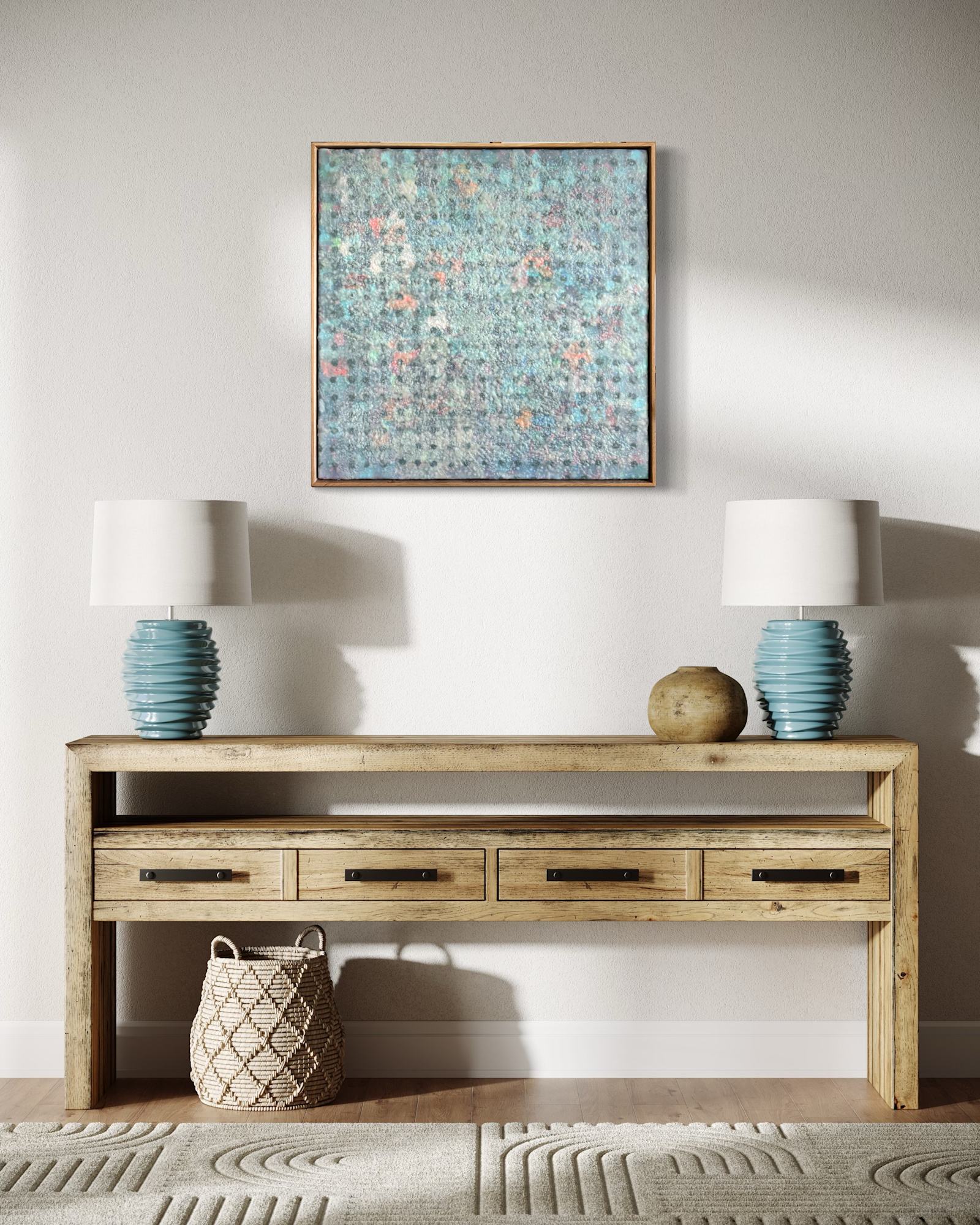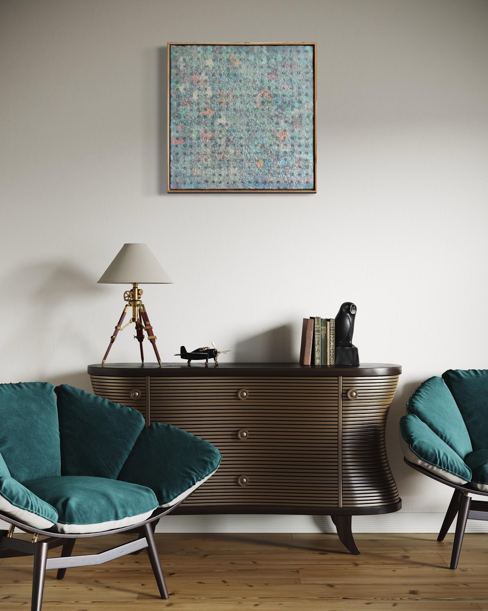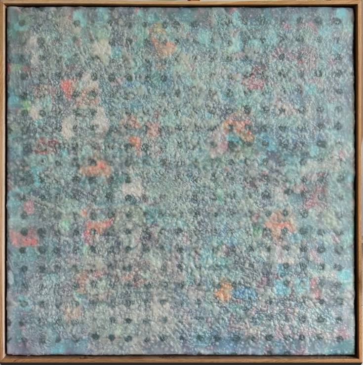 Mixed Media : Encaustic Wax, Acylic, Oil, Collage on Wood, Solid Oak Frame