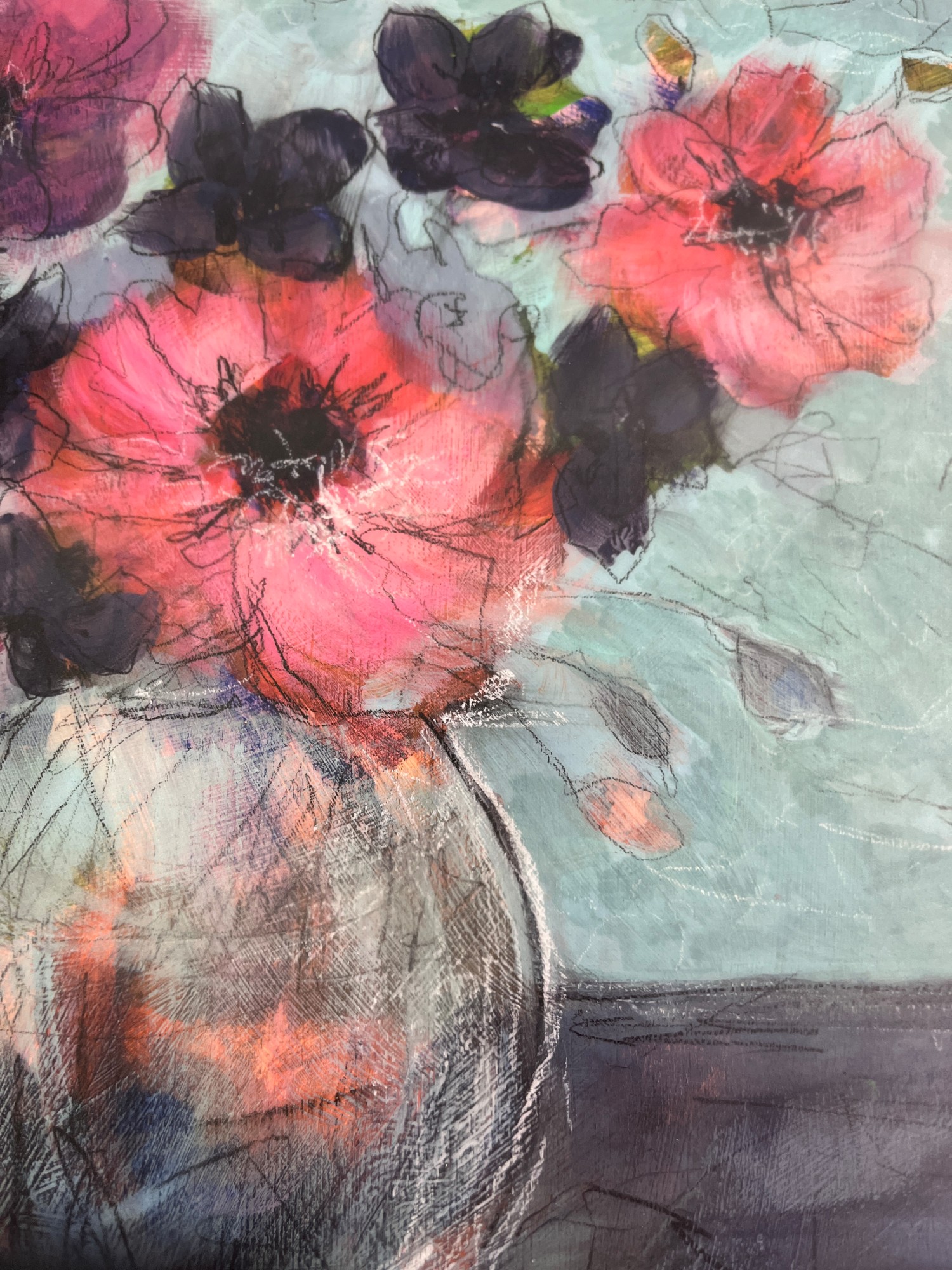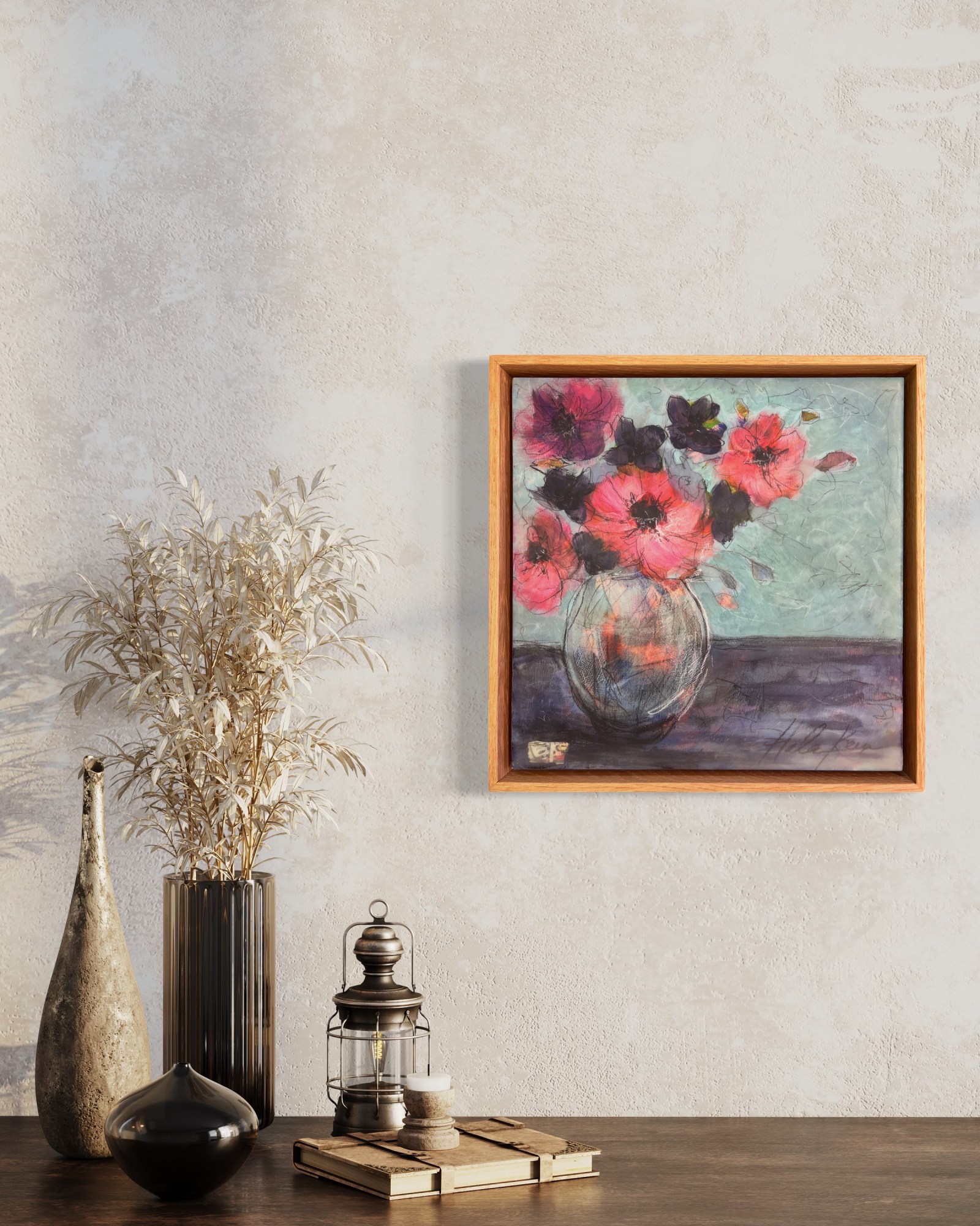 Mixed Media : Acrylic & Encaustic Wax on Wood, Oak Framed