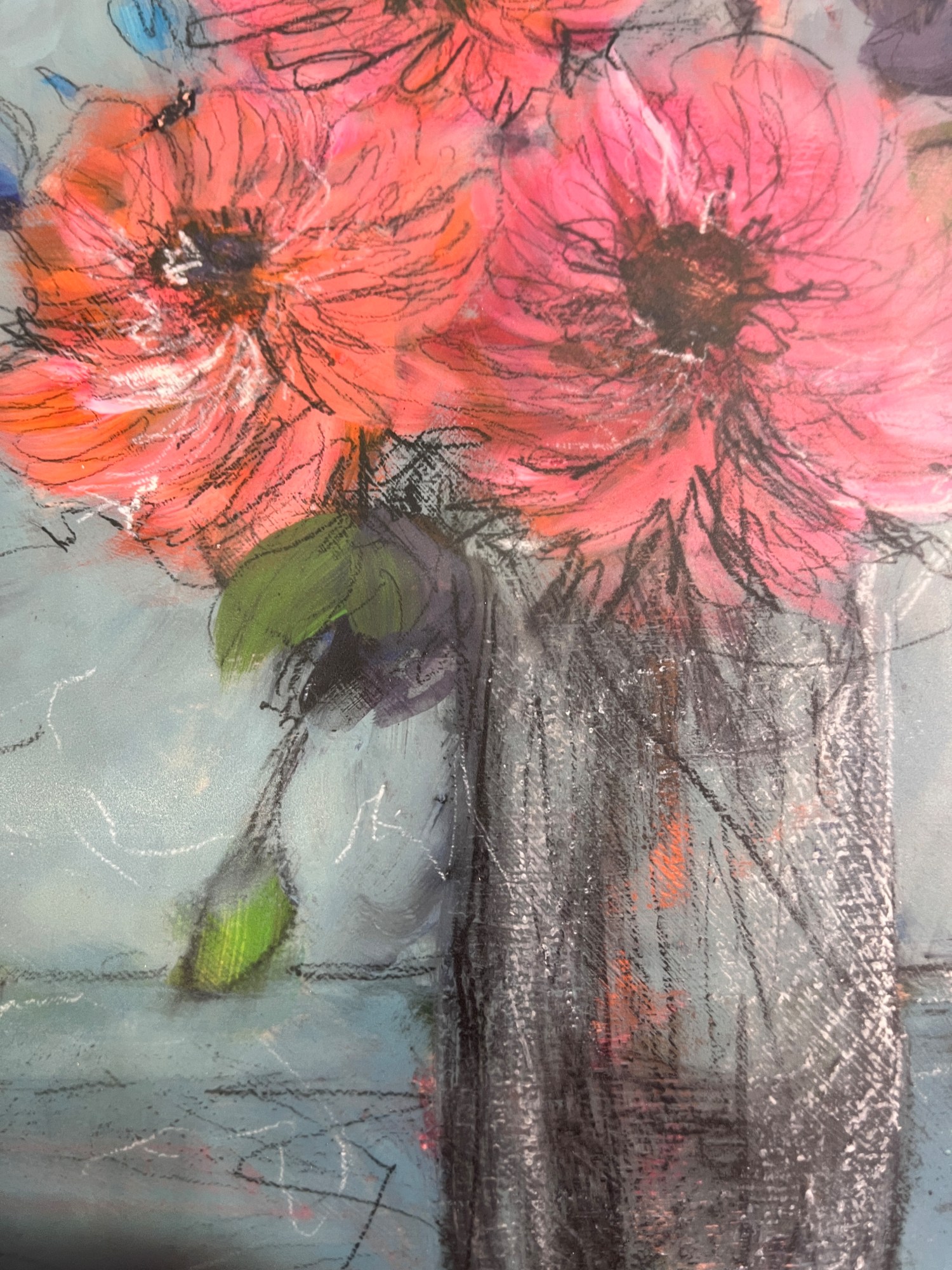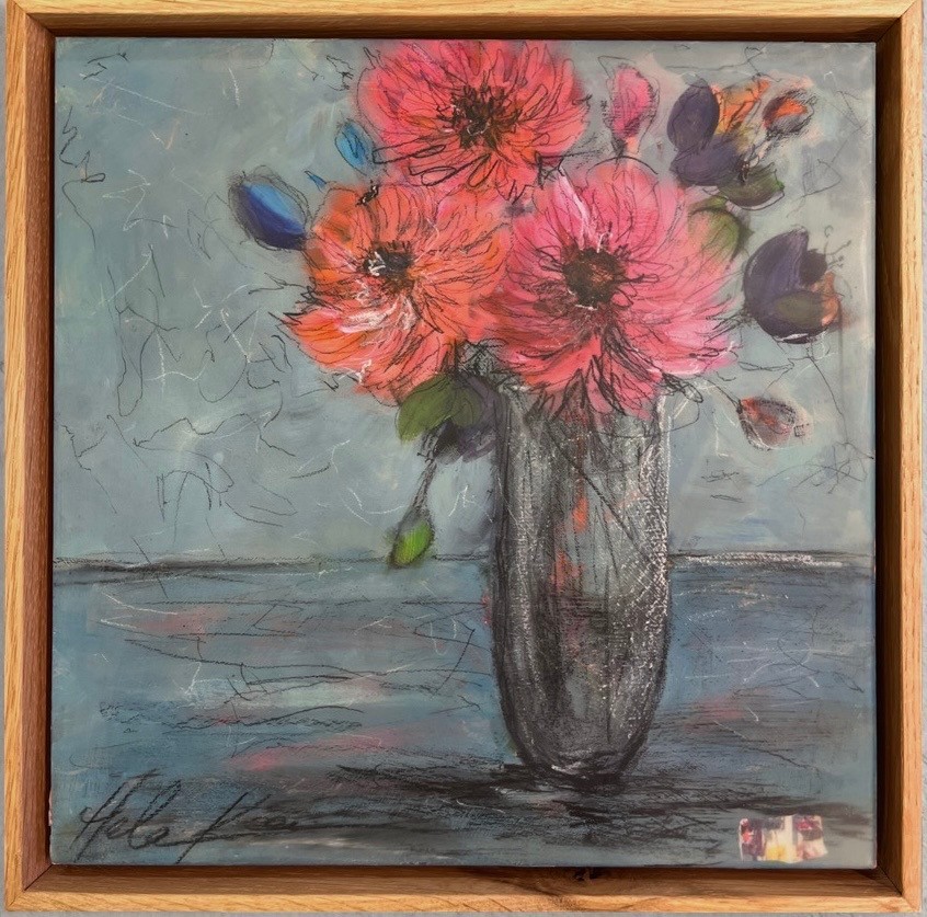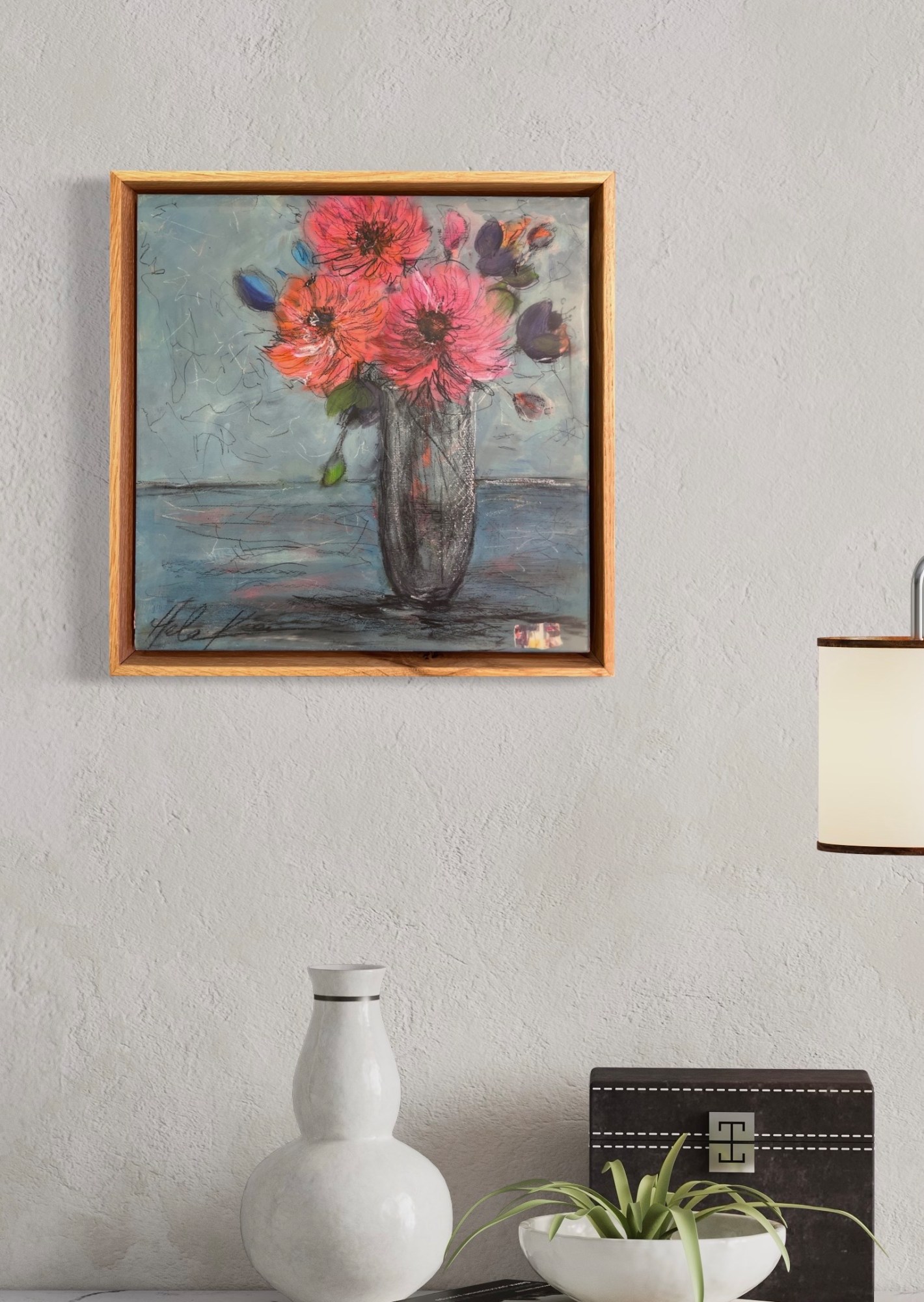 Mixed Media : Encaustic Wax & Acrylic on Wood, Oak Frame